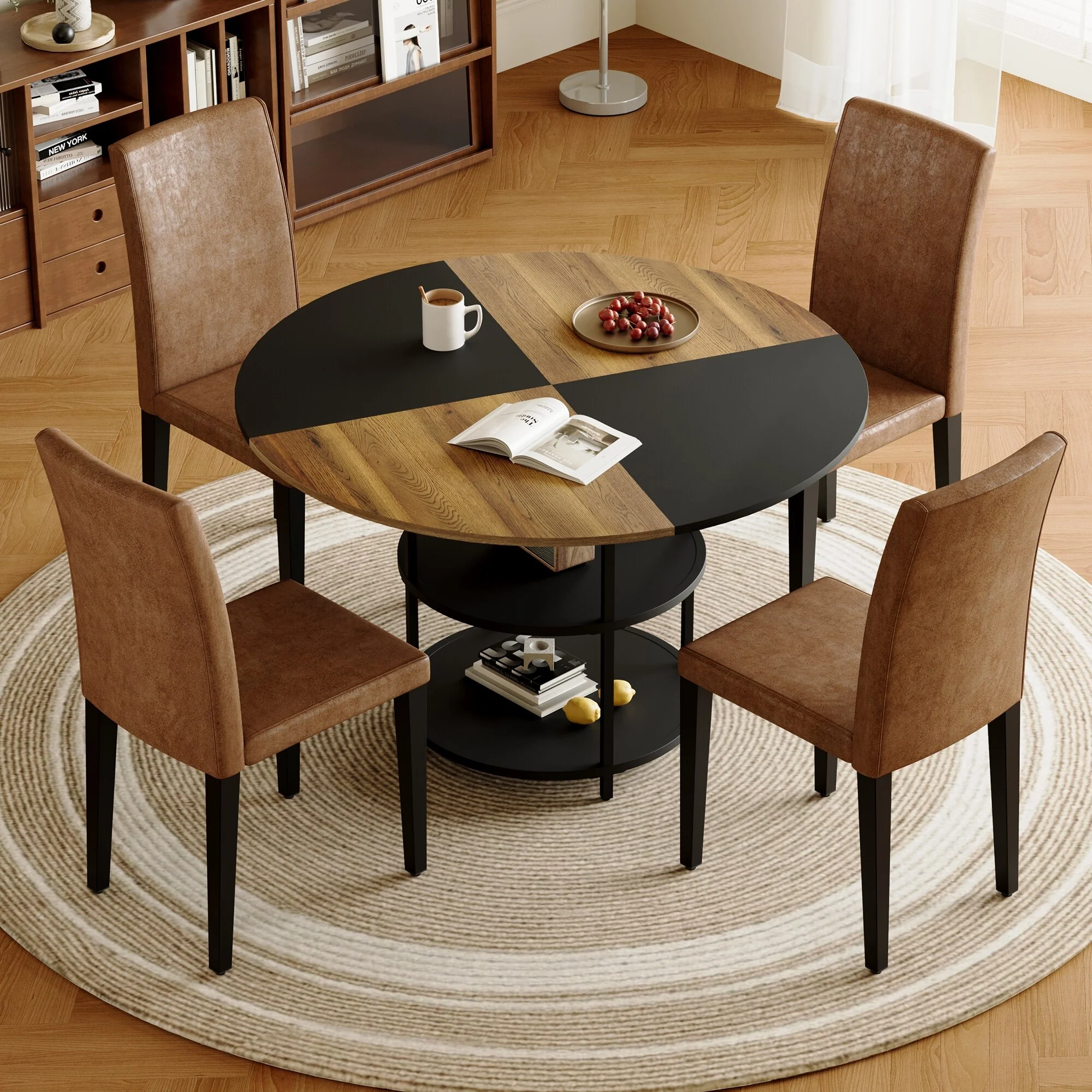 Sasha Oak Angled Leg Round 5-piece Dining Set iNSPIRE Q Modern