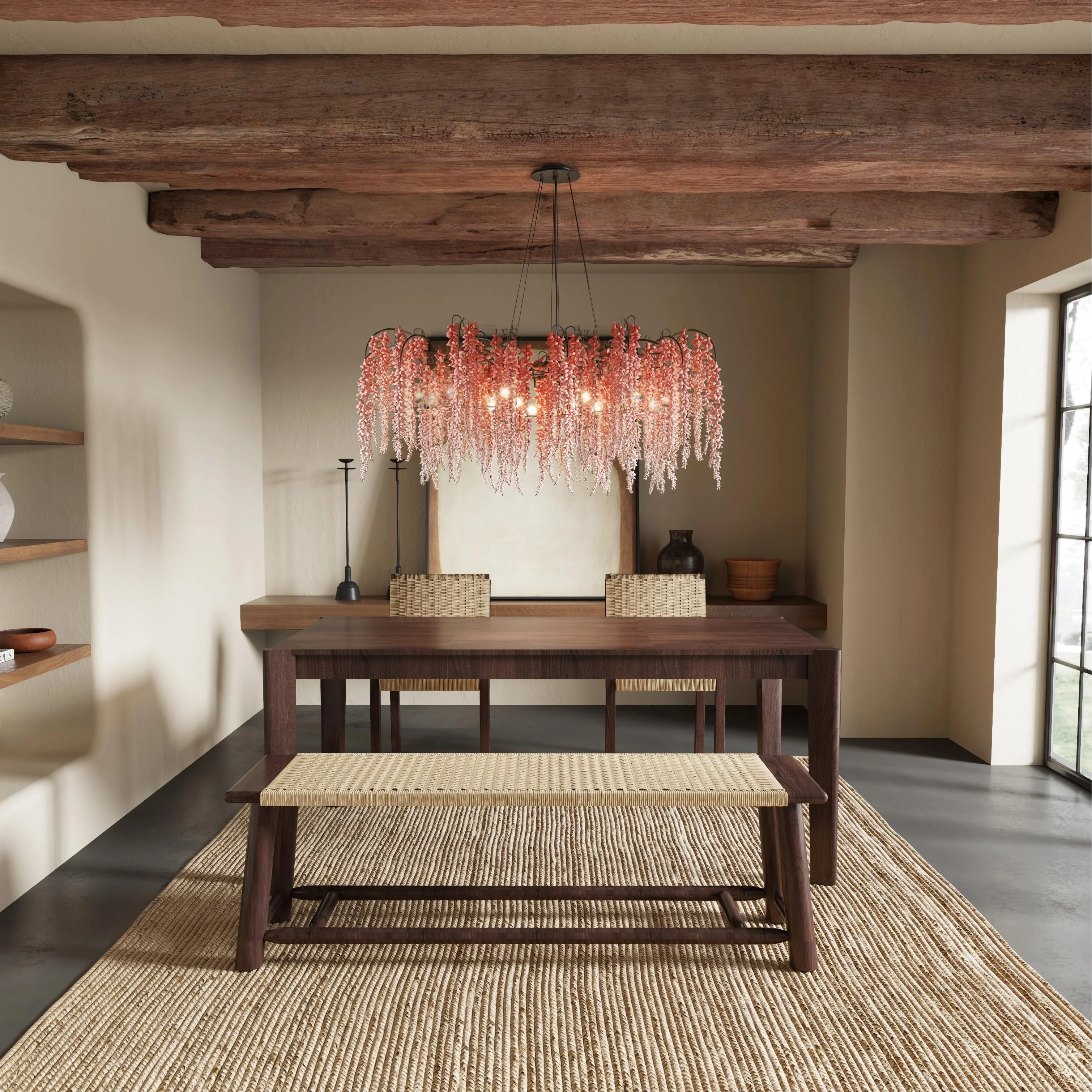 Extendable Solid Wood Dining Set - Rattan Chairs