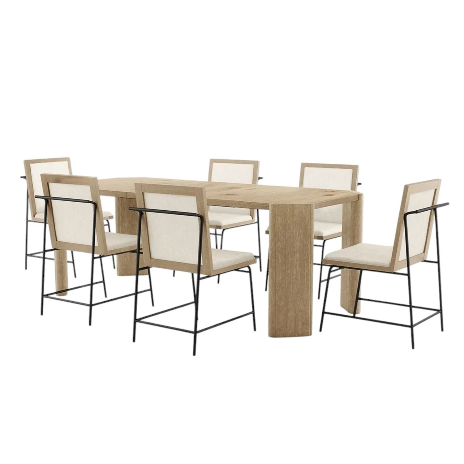 7 Piece Wooden Dining Set with Upholstered Seat in Oak and Beige