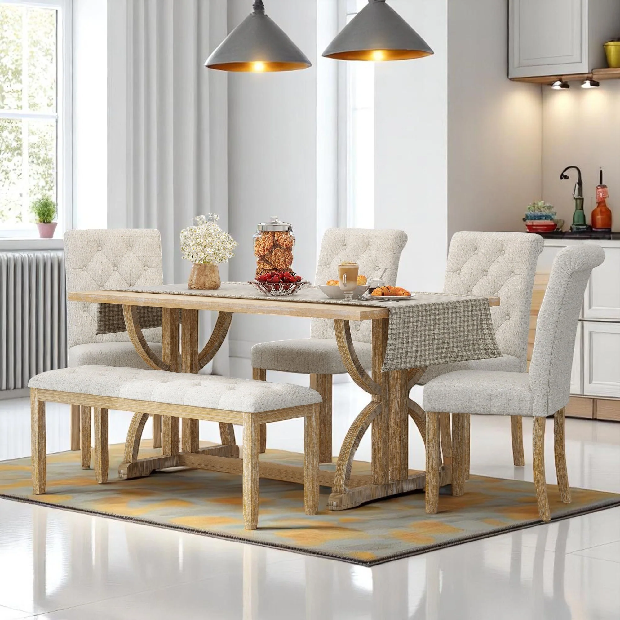 6-Piece Wood Counter Height Dining Table Set with Storage Shelf