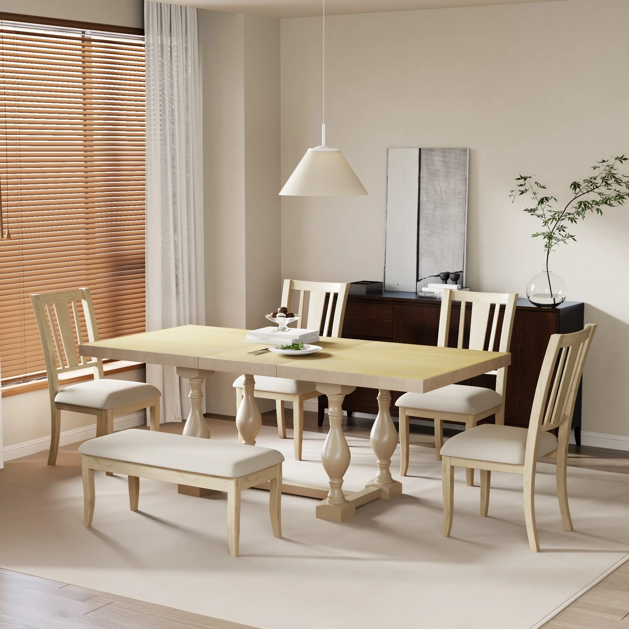 Traditional 6-Piece Wooden Dining Table Set with 4 Chairs & Bench