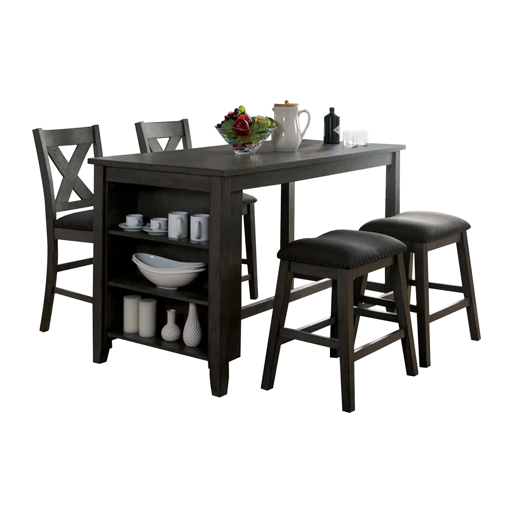 Liam 5pc Counter Height Table Chairs Set, Shelf, Gray Faux Leather
