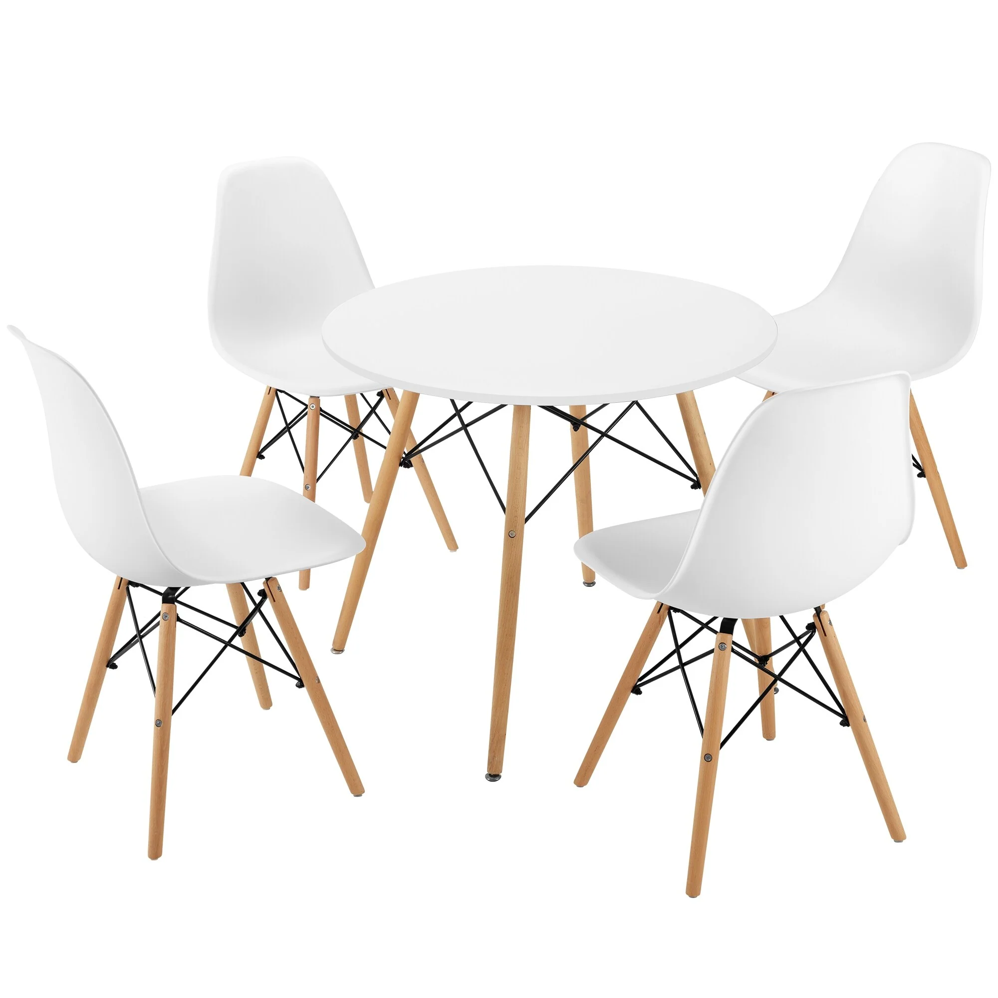 Furniwell 5-Piece Mid-Century Modern Dining Set, Wood Legs