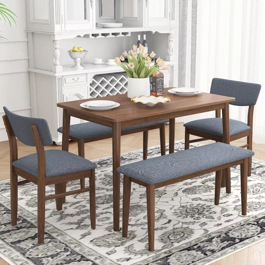 6-Piece Wooden Dining Table Set with 4 Chairs & Bench
