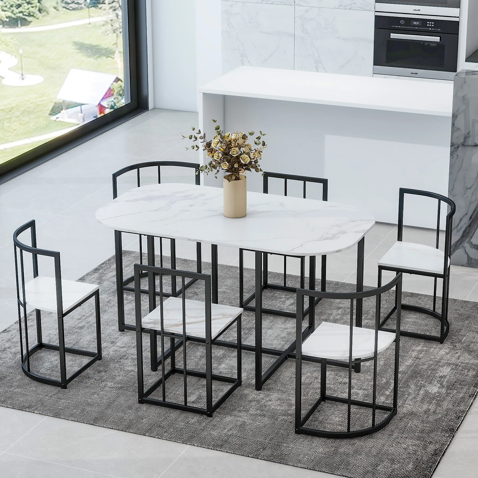 Zoko 7pc Dining Table Set, Polyester Cushion Seats, White Wash Wood