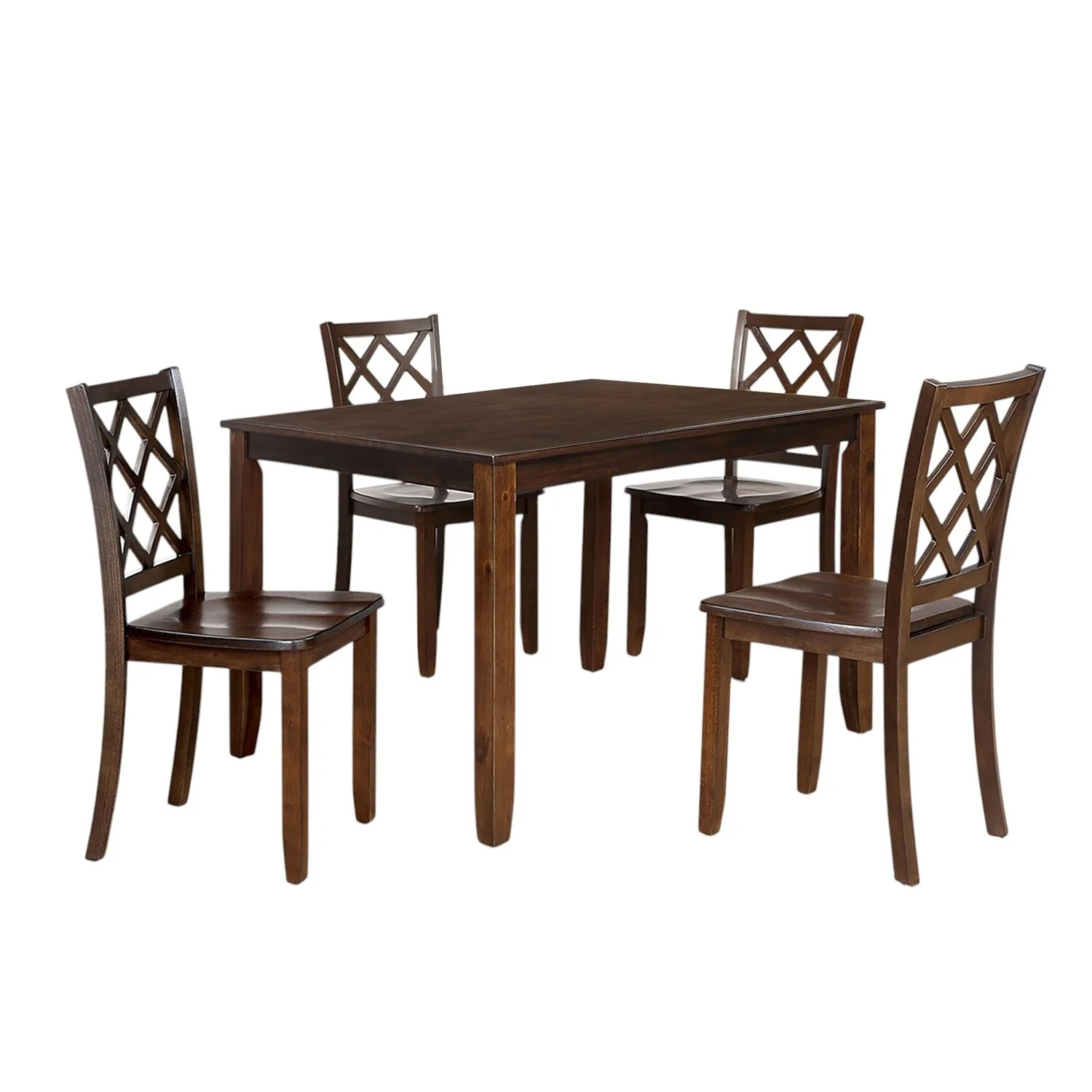 5 Piece Rectangular Wooden Dining Set with Diamond Chair Back