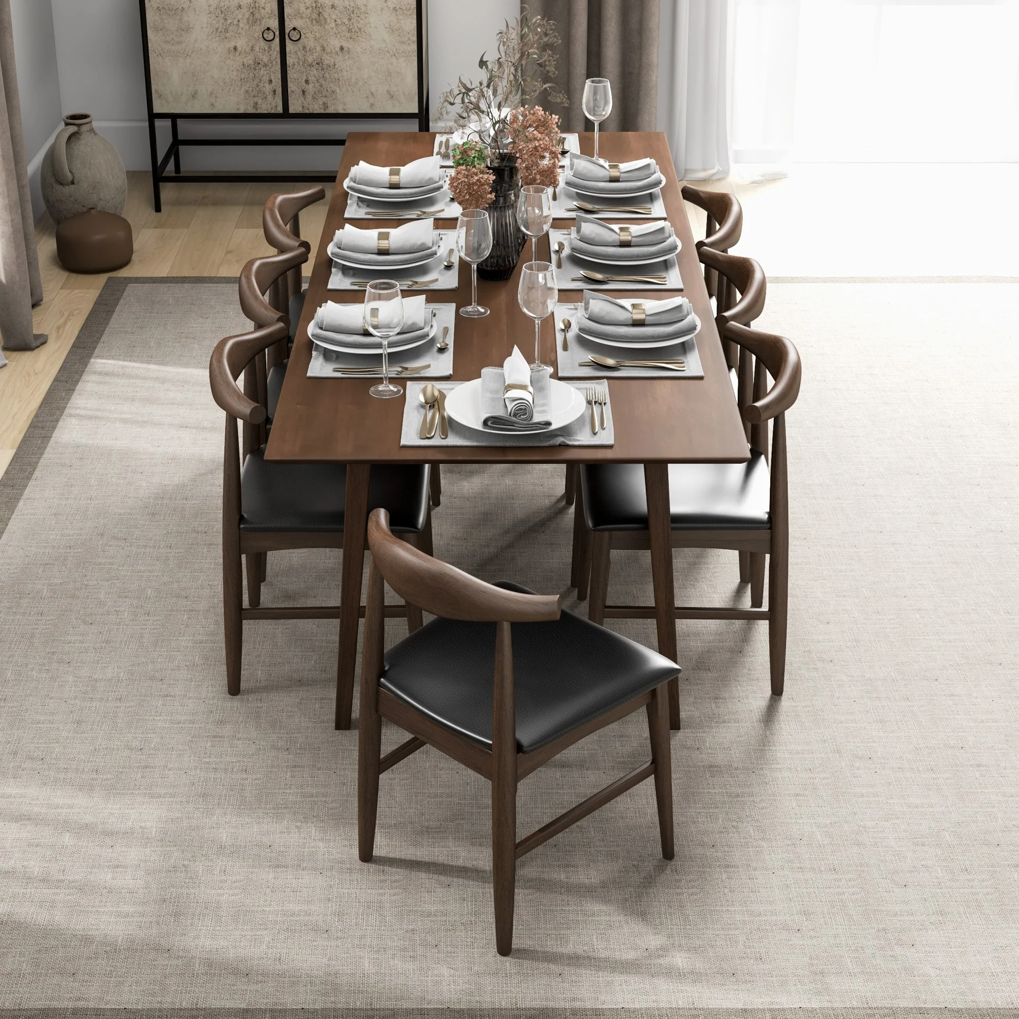 Aden 9-Piece Mid Century Dining Set with 8 Dining Chairs