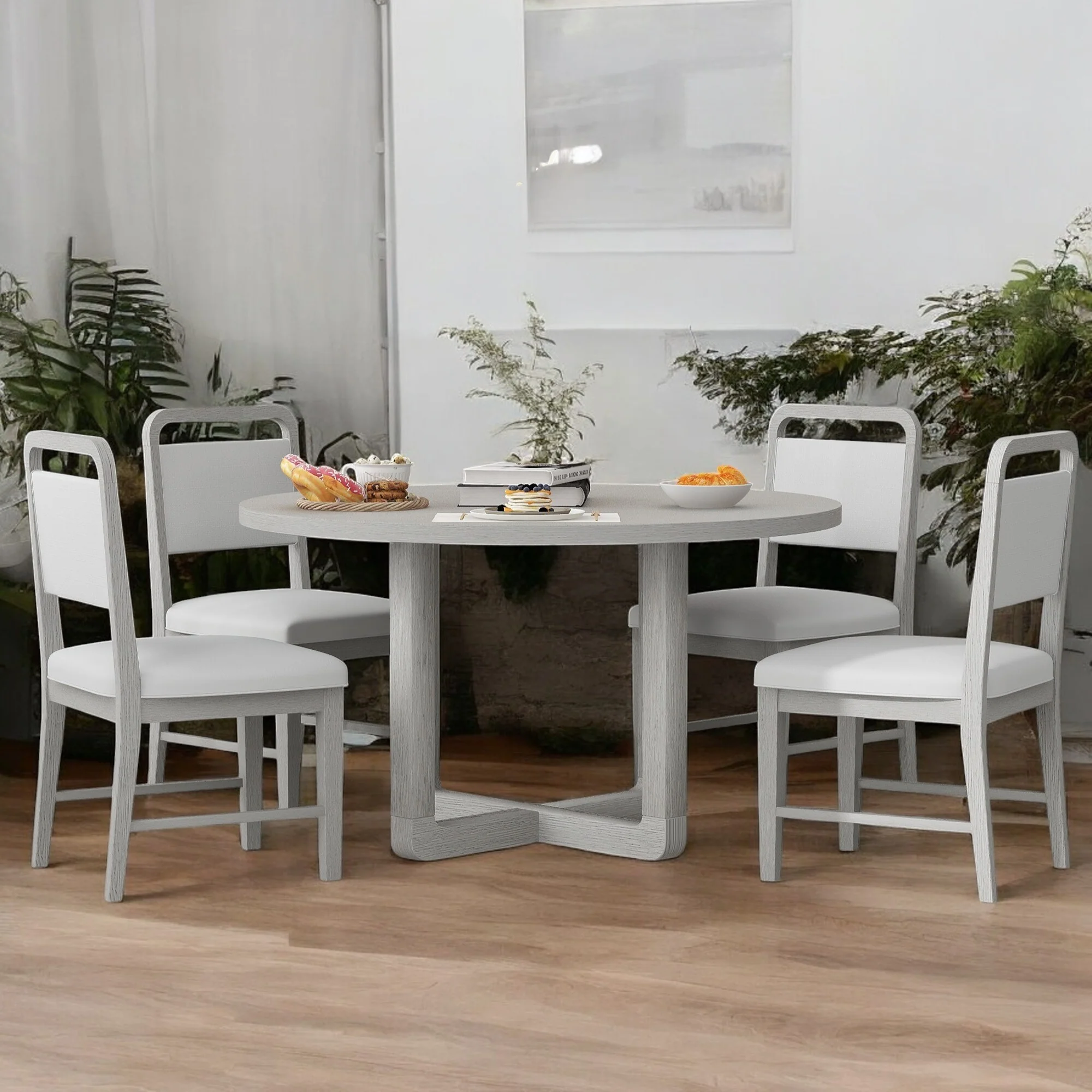 Allyson Park Wirebrushed White 5 Piece Pedestal Table Set