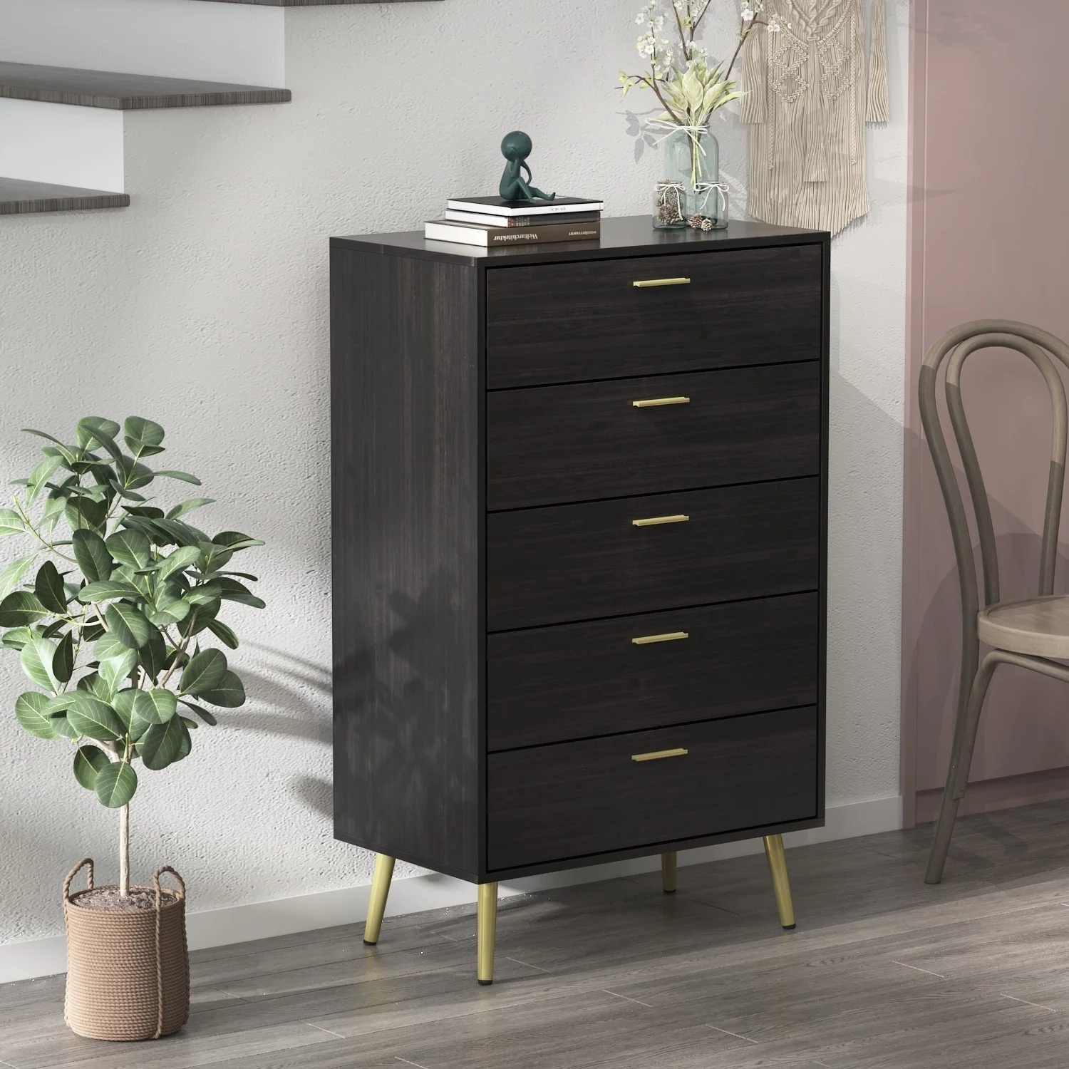 5 Drawer 27.4 W Chest&Dresser With Metal Legs