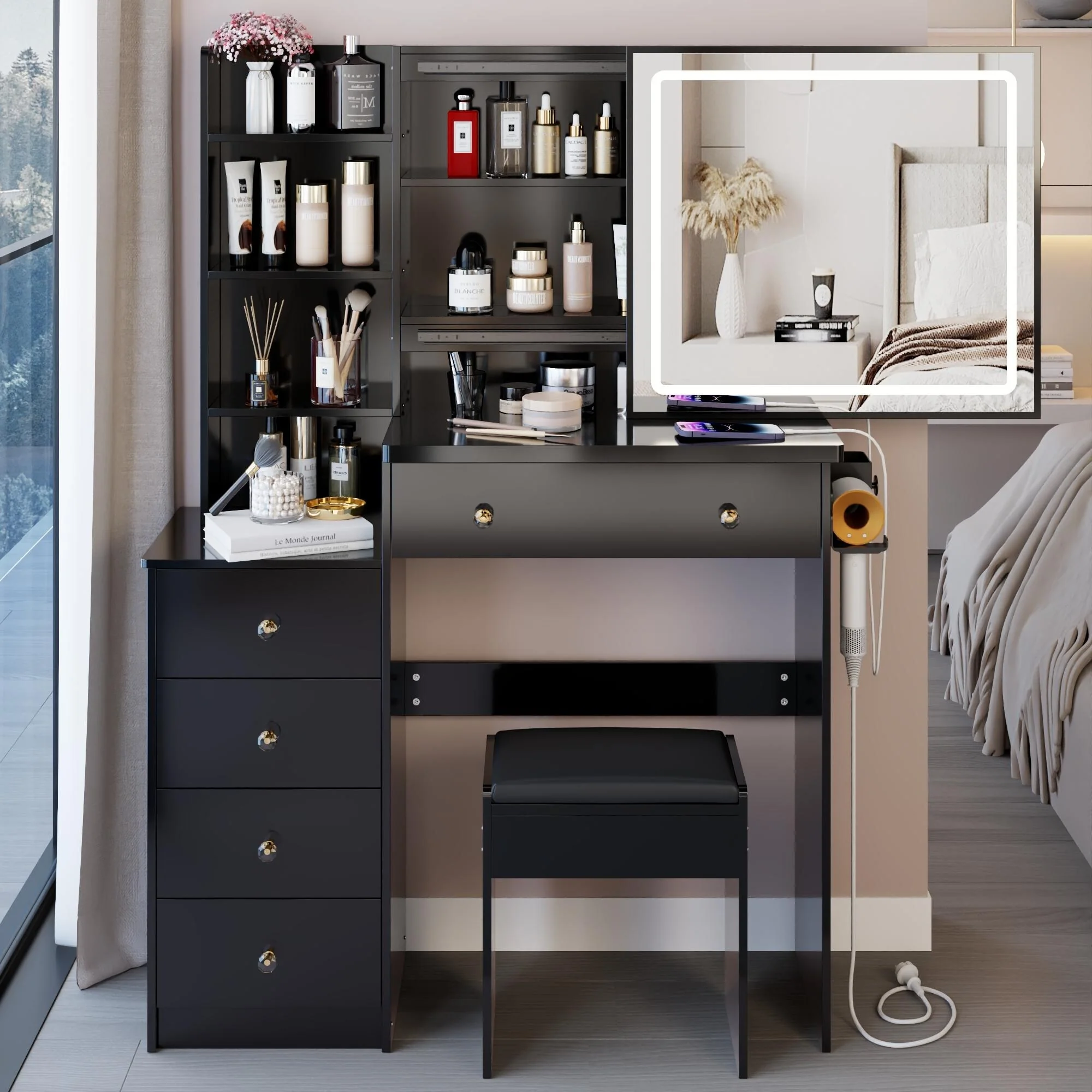 Elegant Vanity Table with Large Lighted Mirror