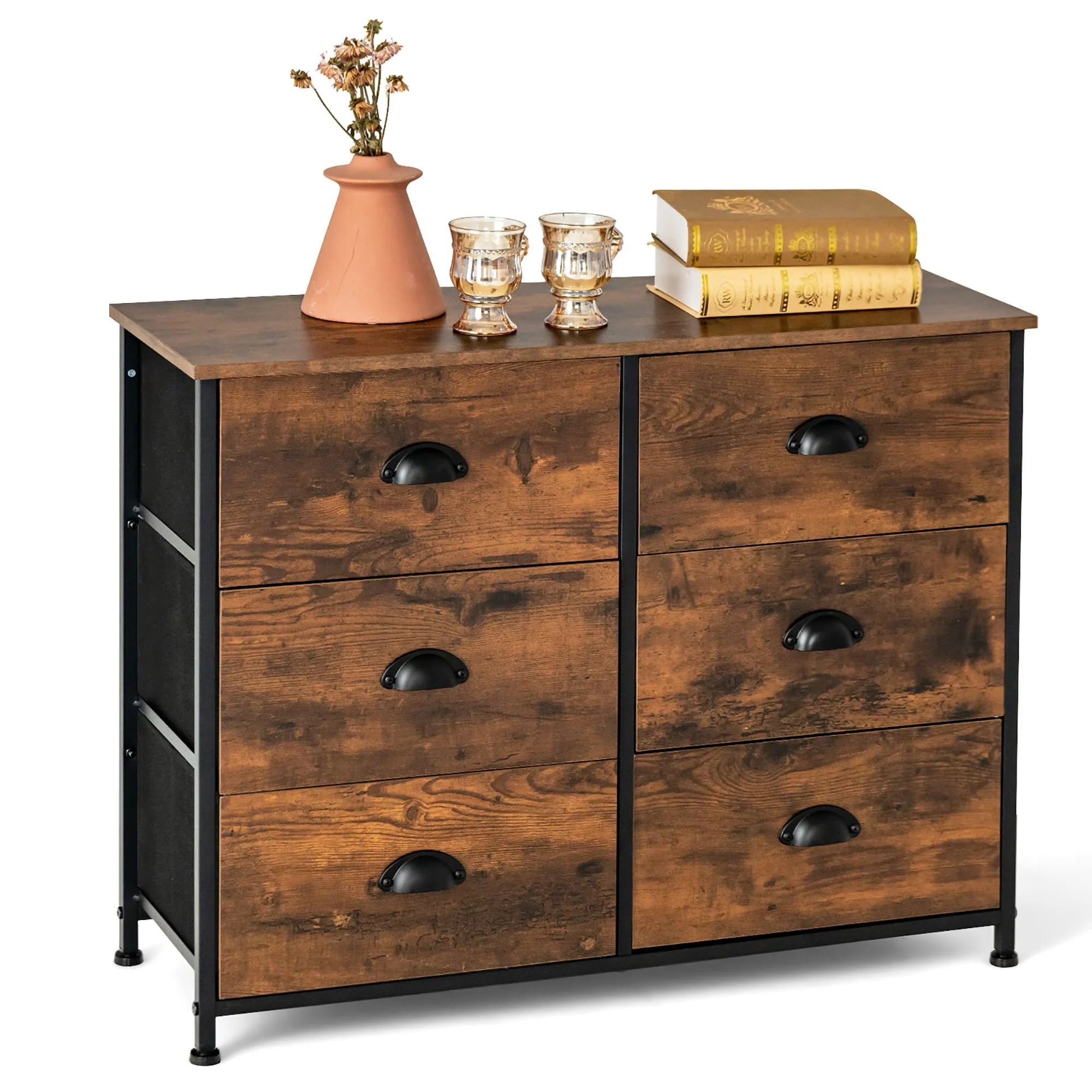 Costway 6 Drawer Dresser Fabric Storage Tower w/wooden Top Chest
