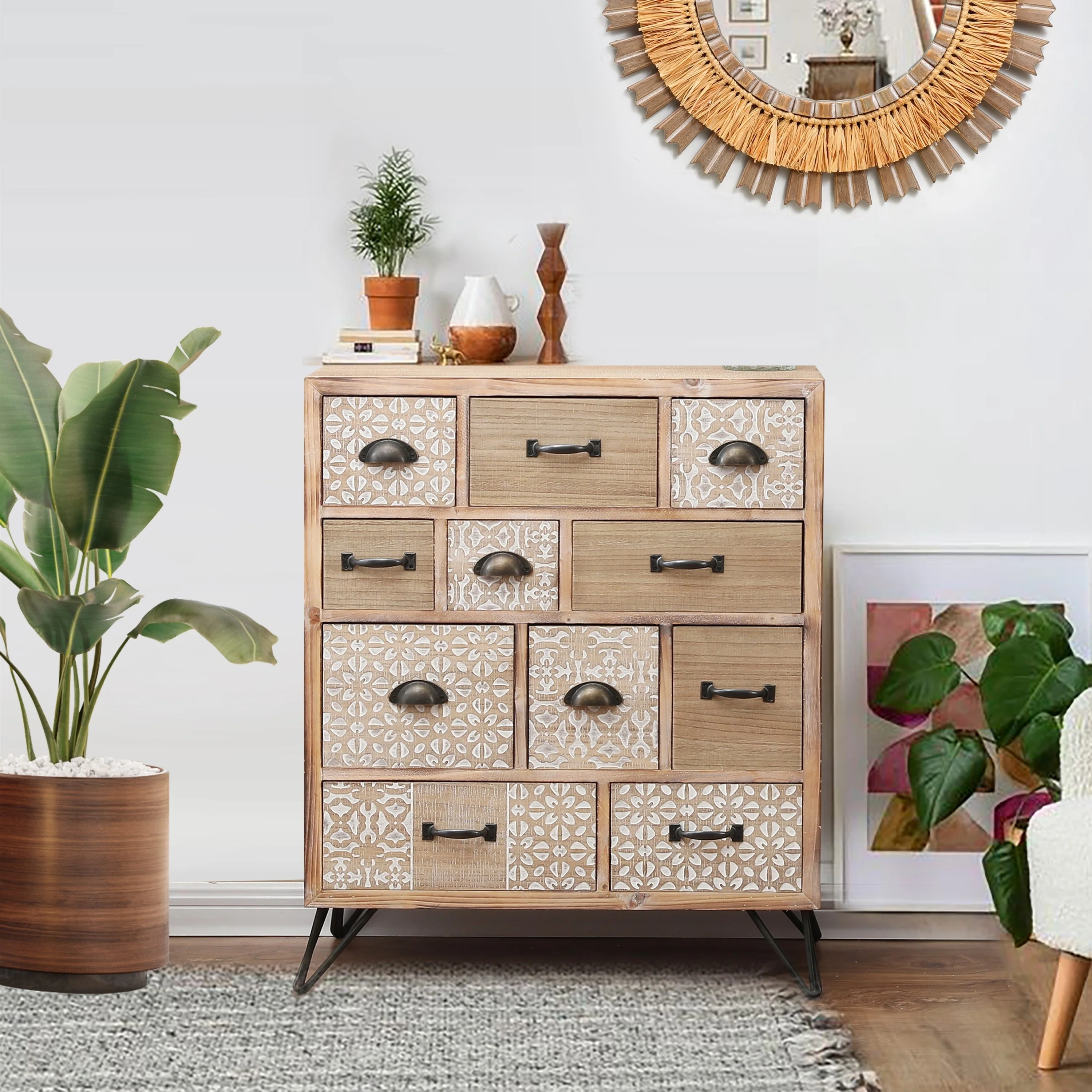 11-Drawer 33.5 H x 27.6 W Natural Wood Apothecary Chest