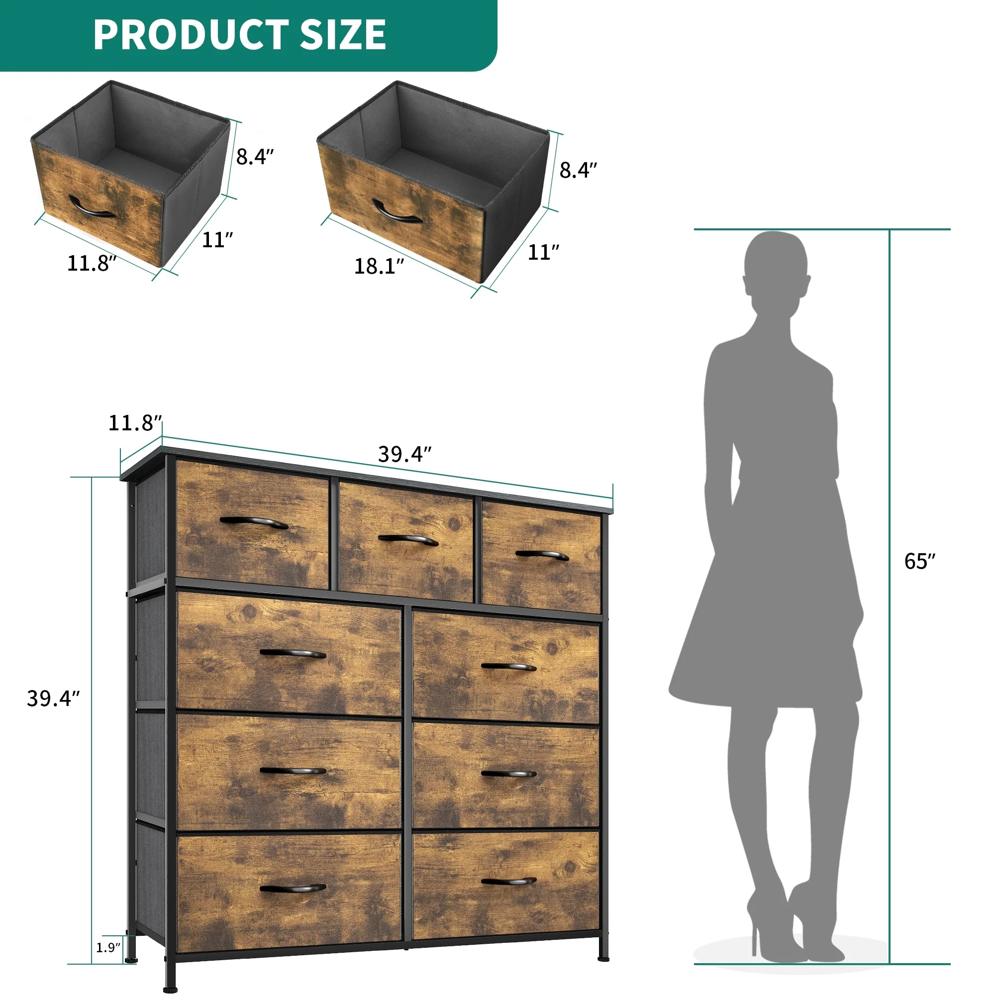 Modern 9-drawer Bedroom Dresser Storage Tower