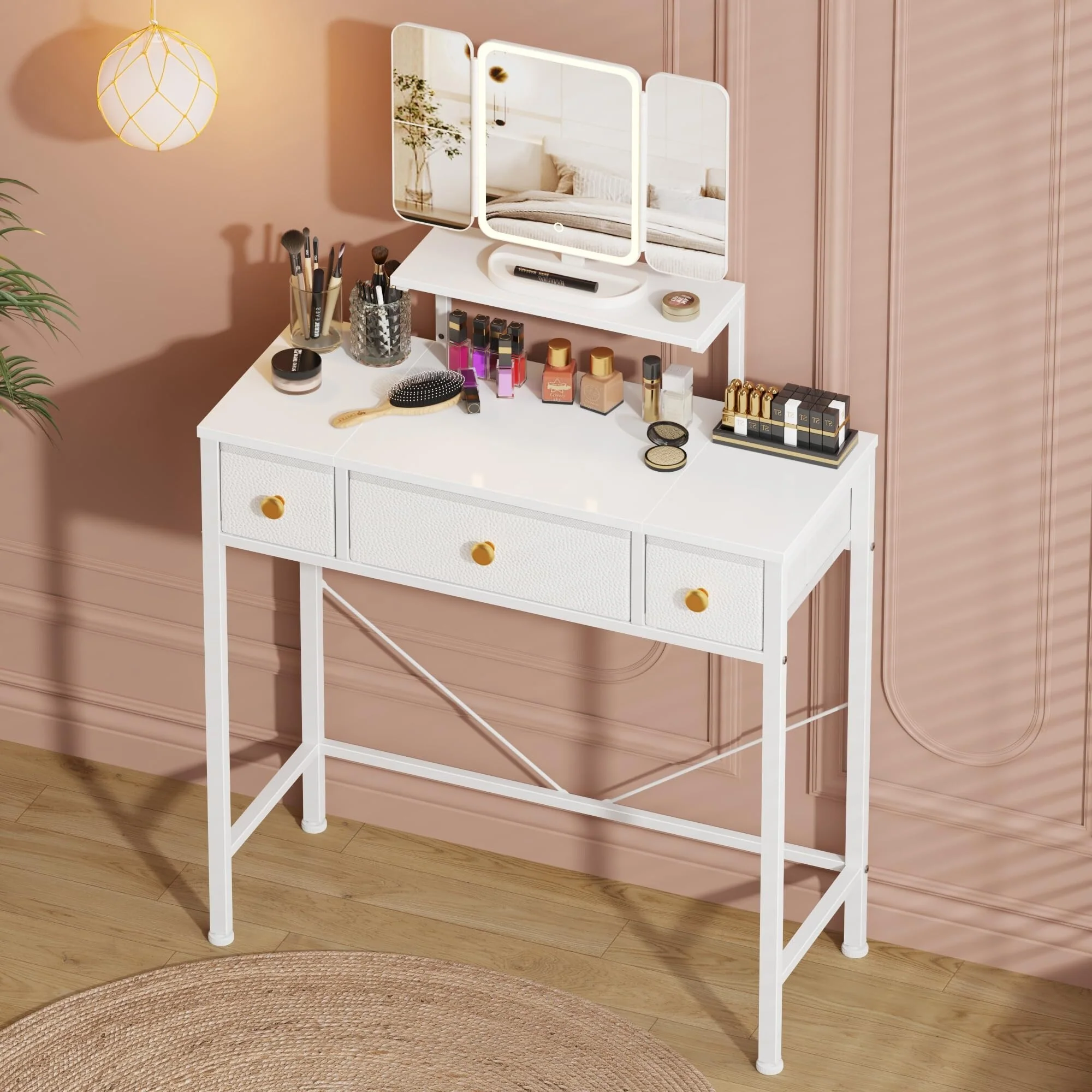 White Vanity Desk with 360 degree Rotated Mirror