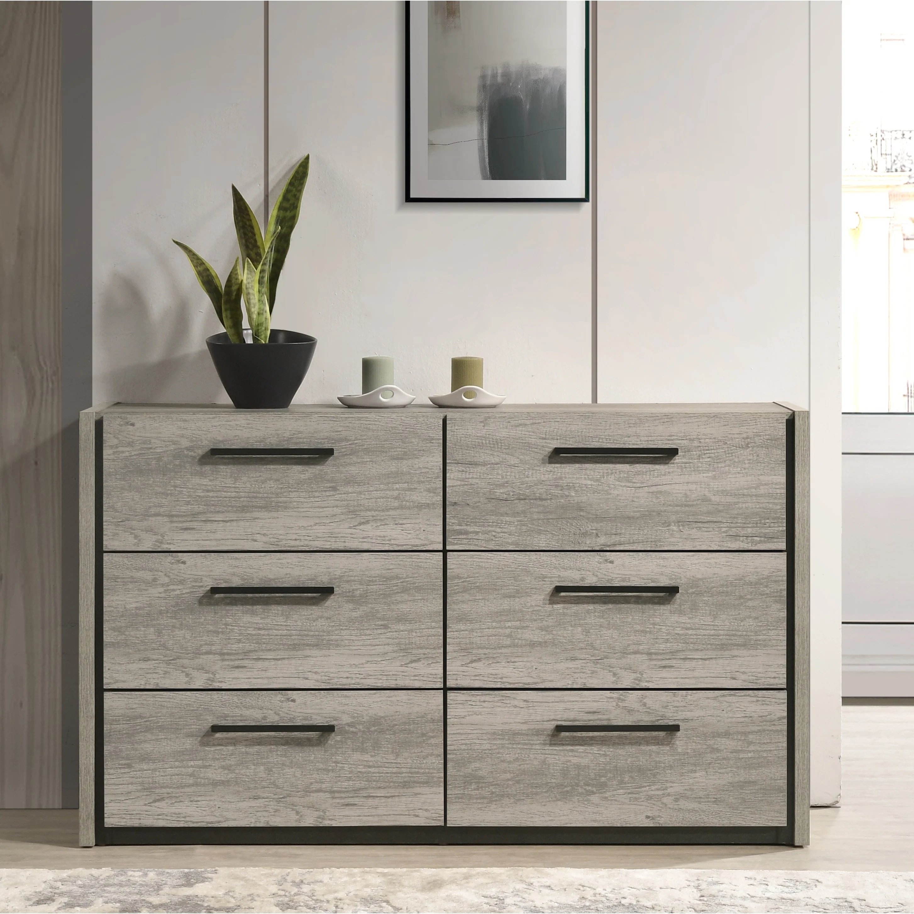 Roundhill Furniture Lenca 6-Drawer Dresser - Weathered Gray