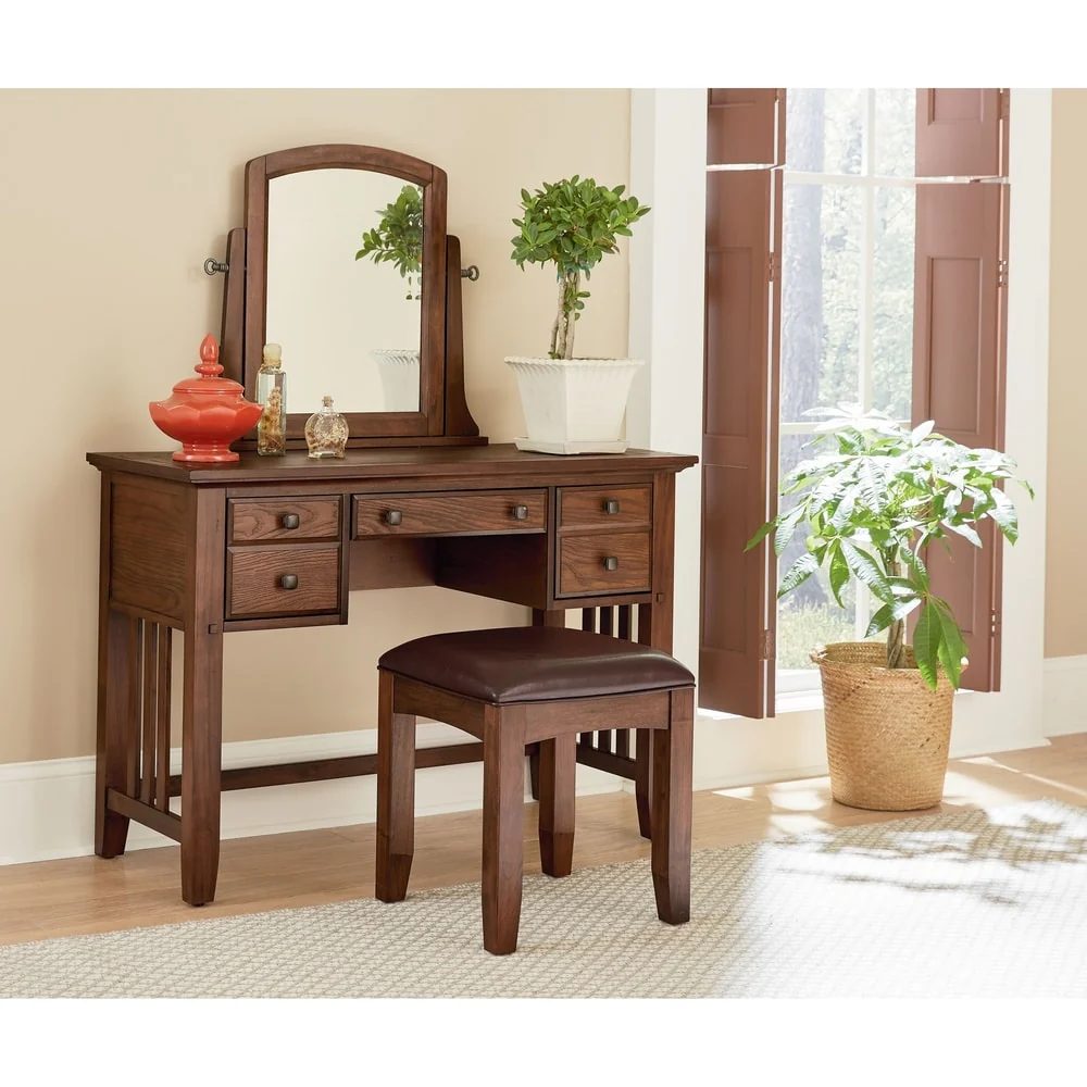 Modern Mission Bedroom Vanity and Mirror set - Bench Included