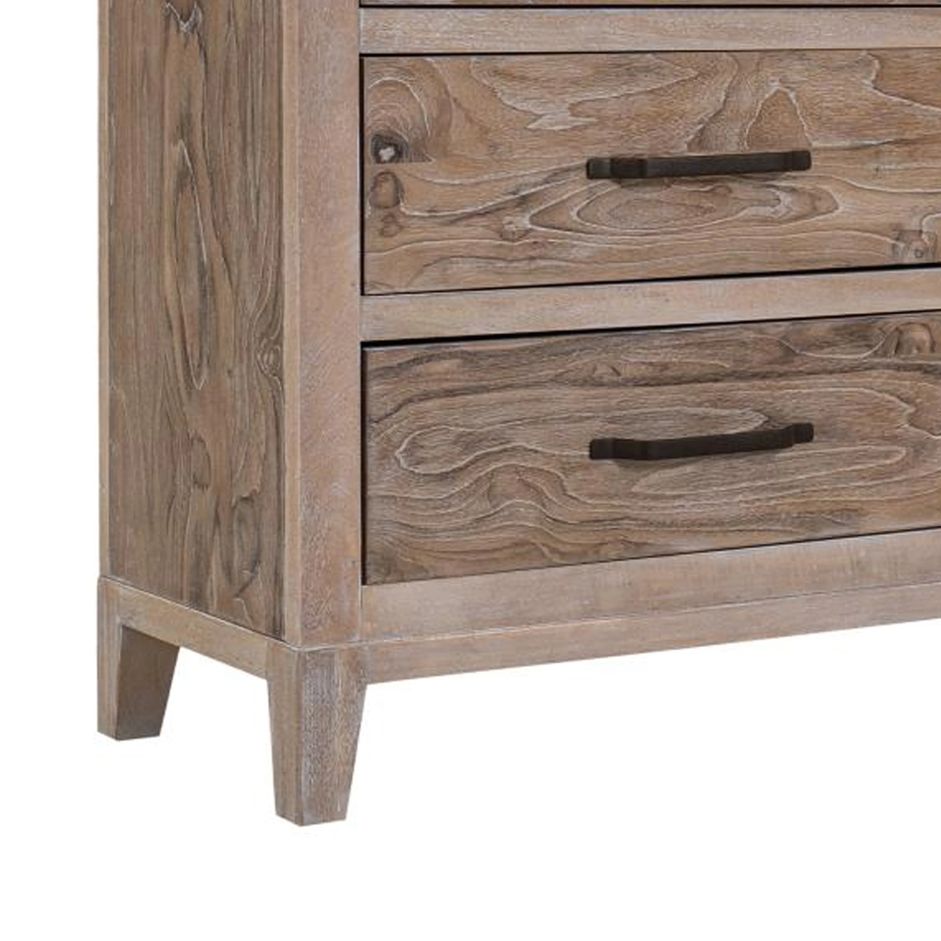 Zoko Wide Dresser with 5 Drawers, Textured Metal Accents, Ash Gray