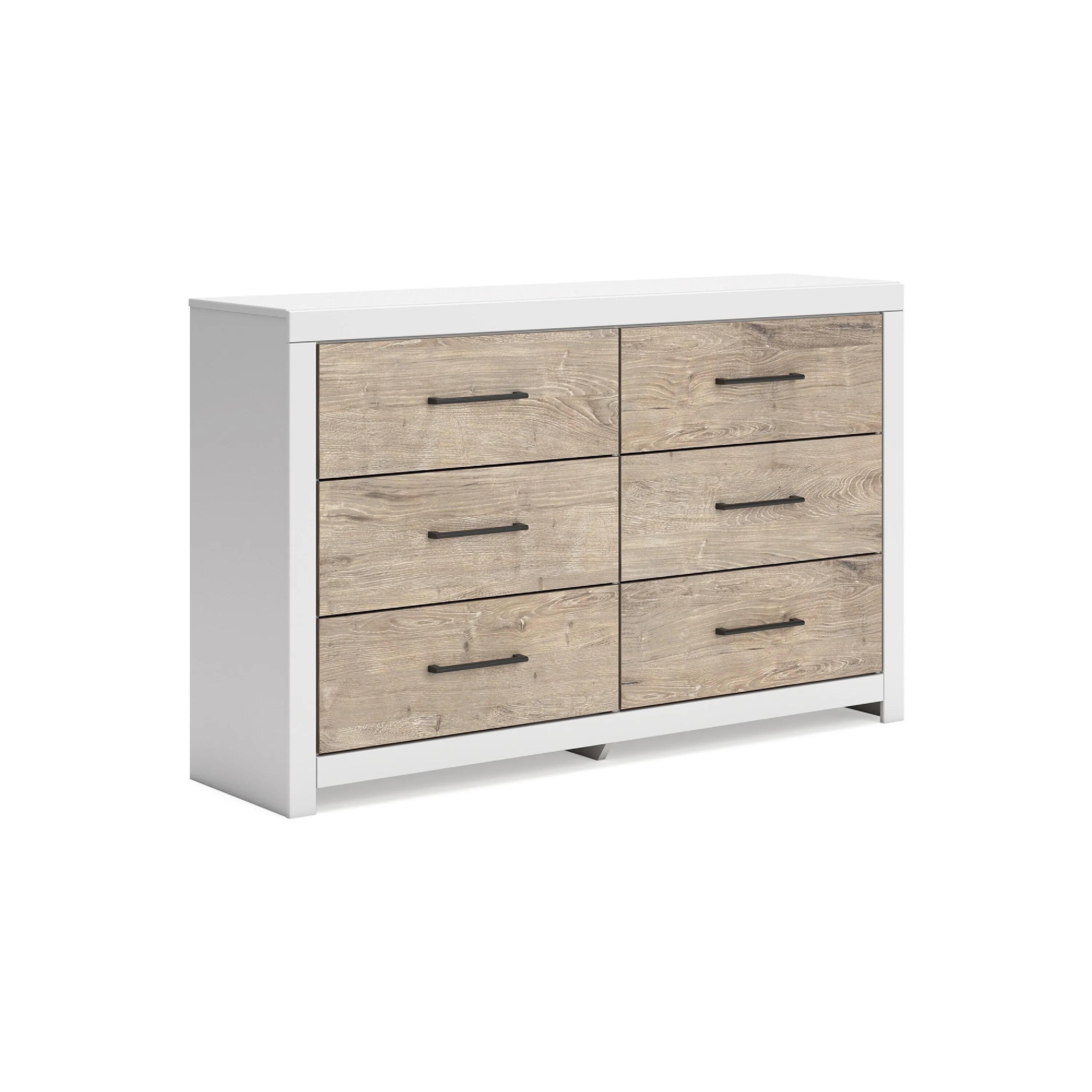 Bittz 59 Inch Dresser, 6 Drawers, Modern Laminate White, Light Brown