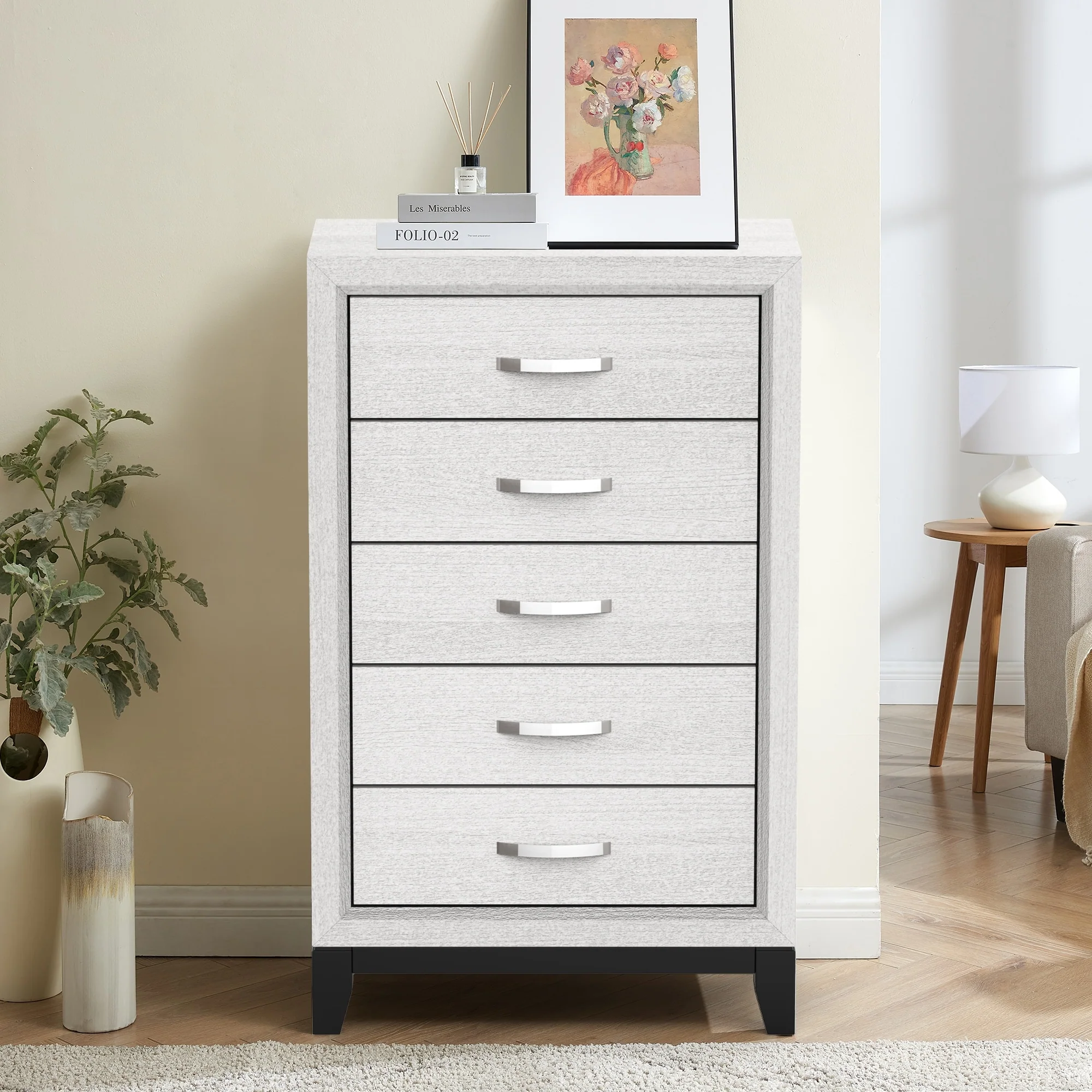 51 Tall Modern White Wood 5-drawer Storage Chest with Metal Pull