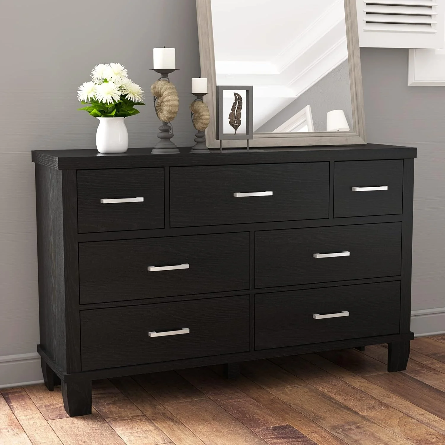 51 Wide Wooden Dresser Organizer with 7 Drawers