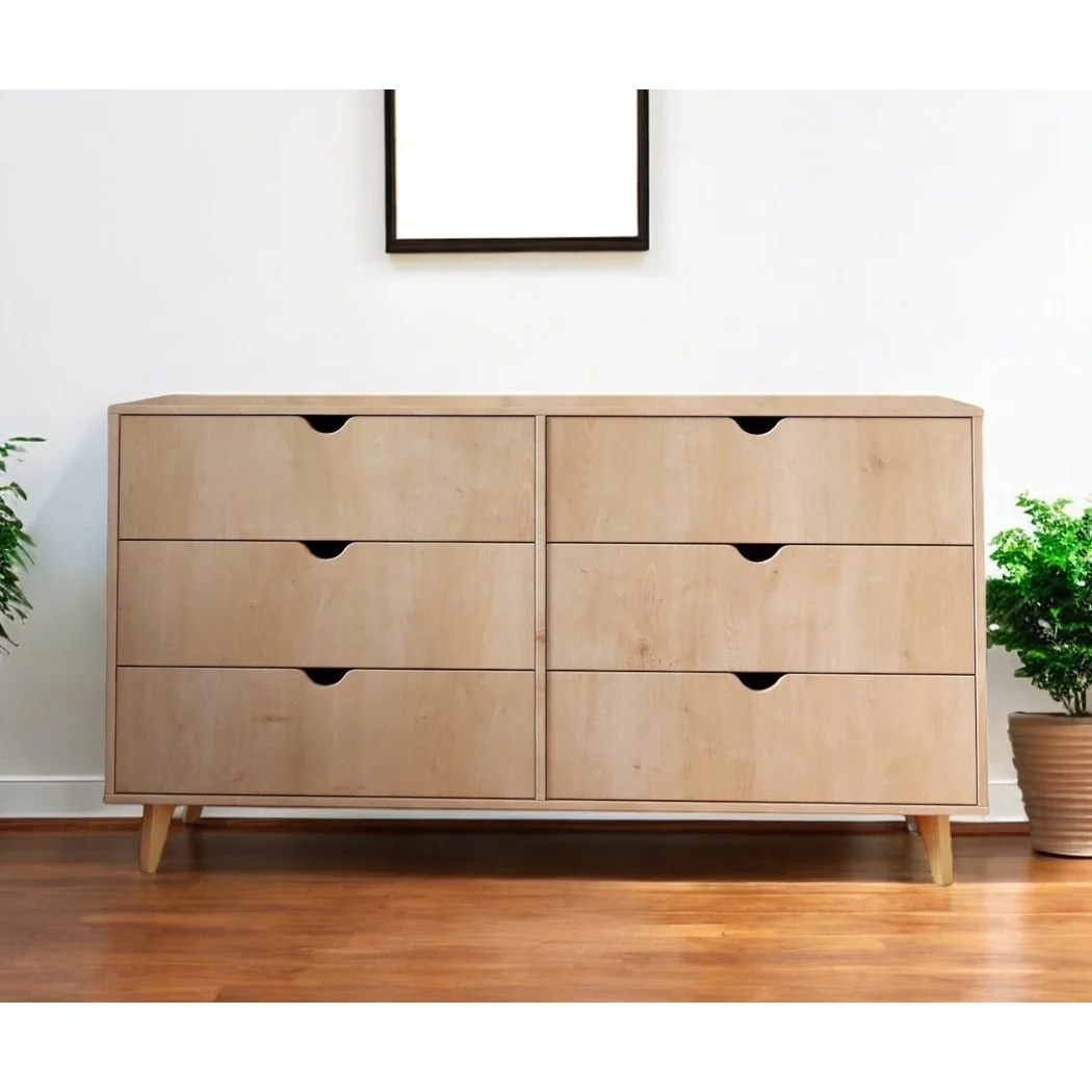 HomeRoots 59 Natural Six Drawer Double Dresser
