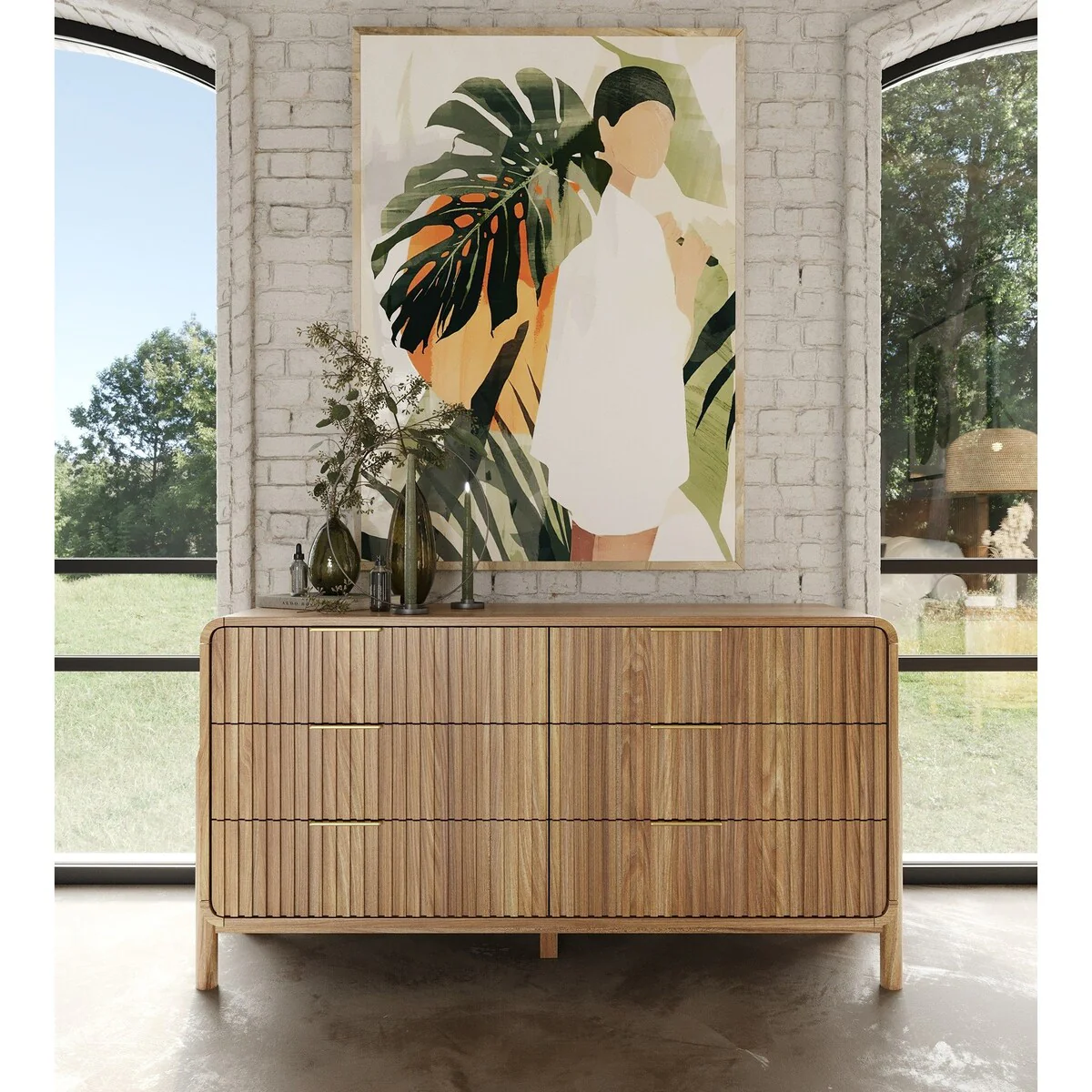 Modern Natural Rattan 6-Drawer Dresser