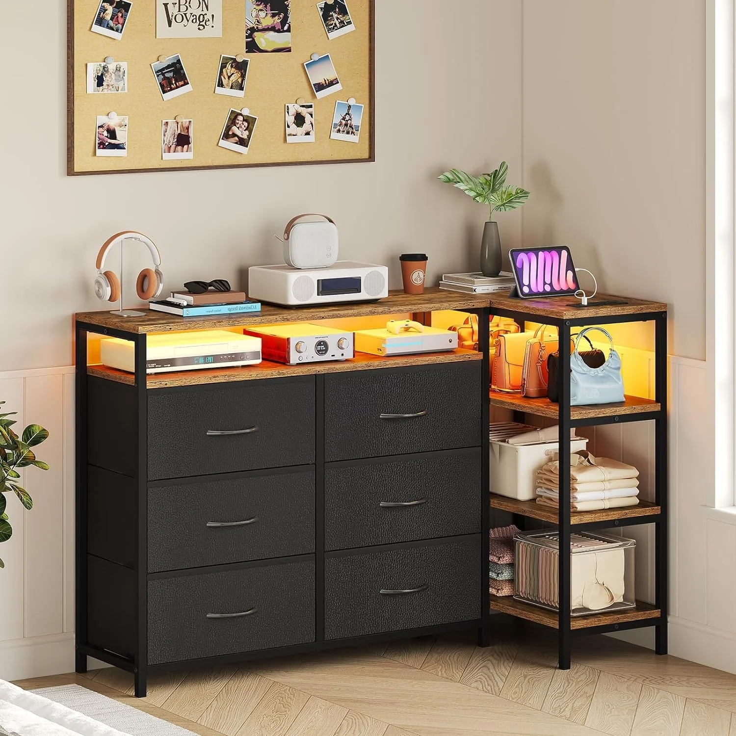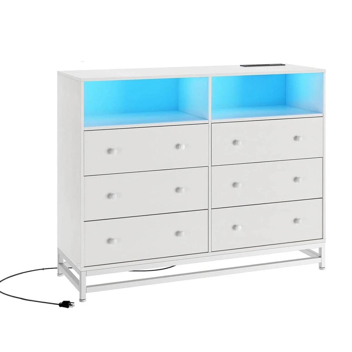 6 Drawer Dresser with LED Lights, Charging Station