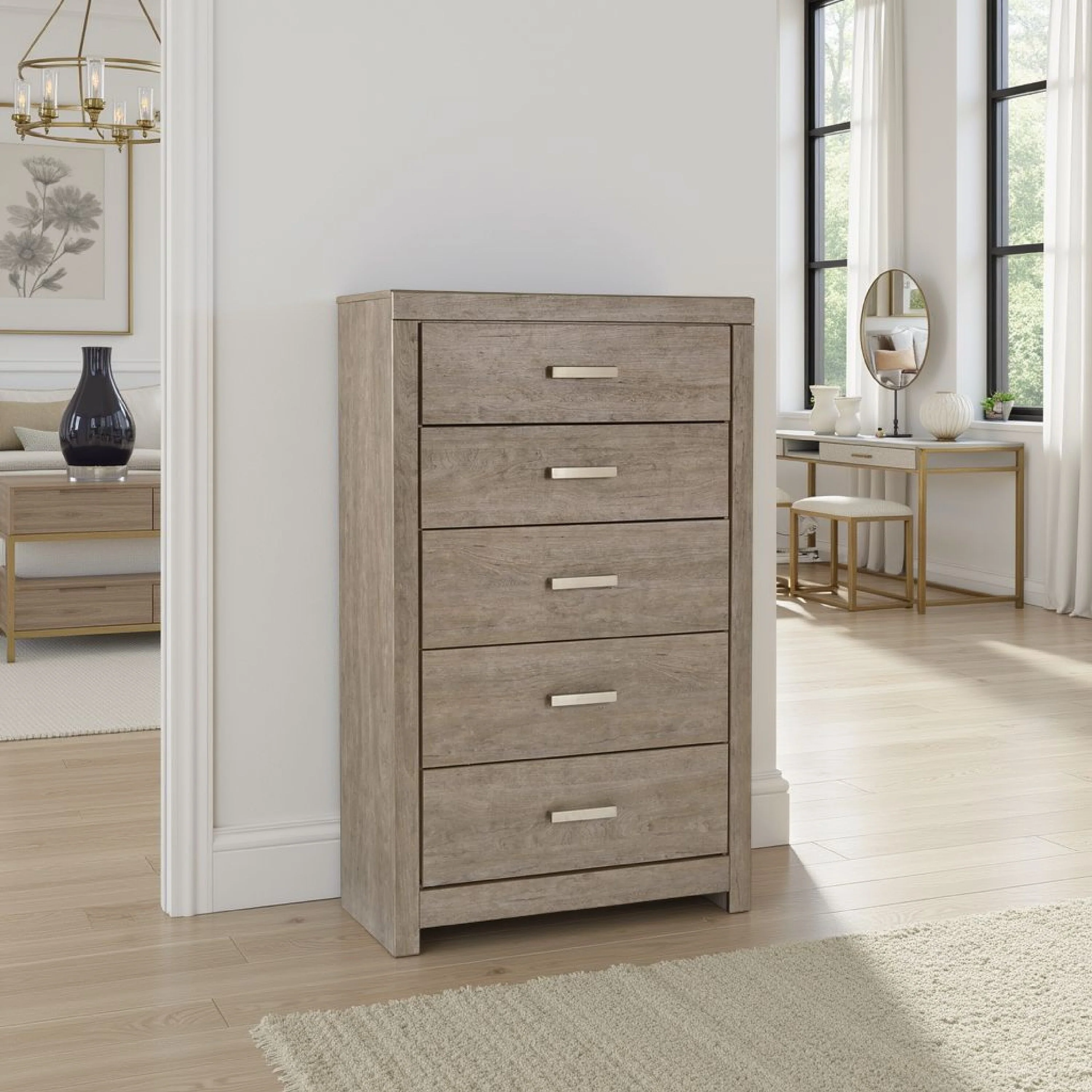 Lifestorey Maxwell 5-Drawer Chest with Natural Cane