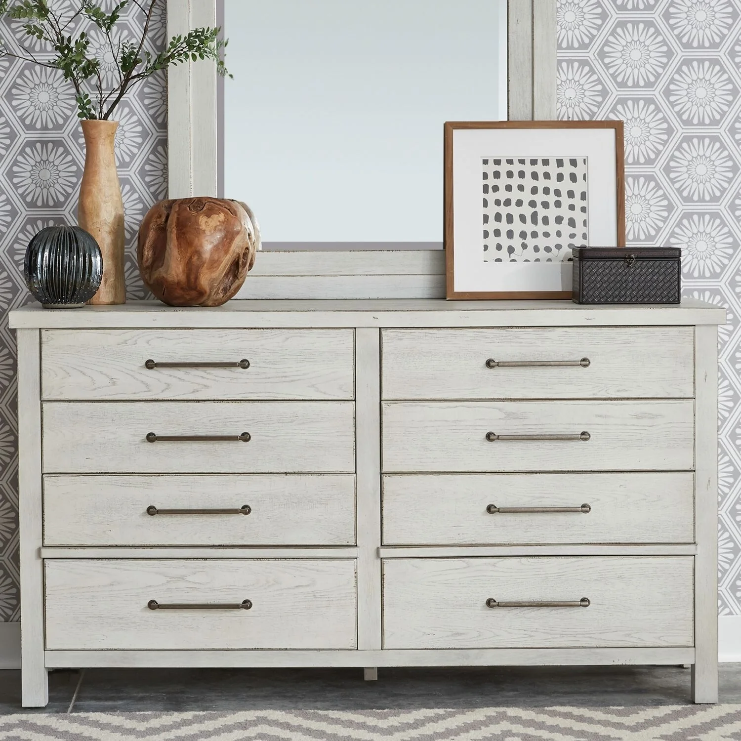 Modern Farmhouse Flea Market White Distressed 8 Drawer Dresser