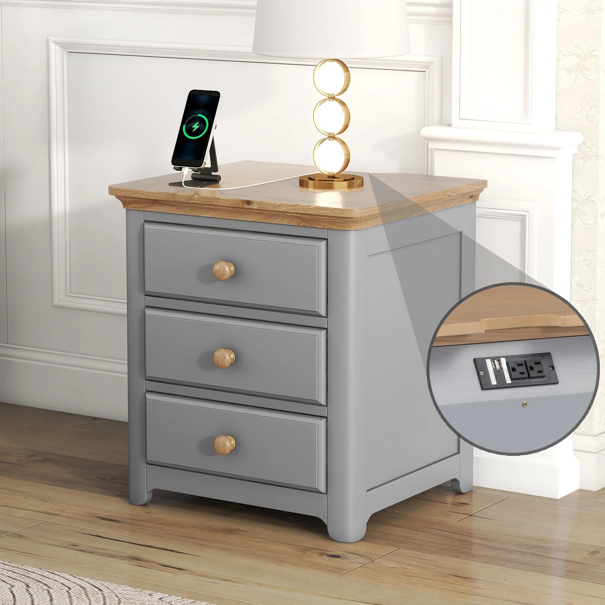 Decon Modern Oak Brown Finished Wood 3-Drawer Storage Chest