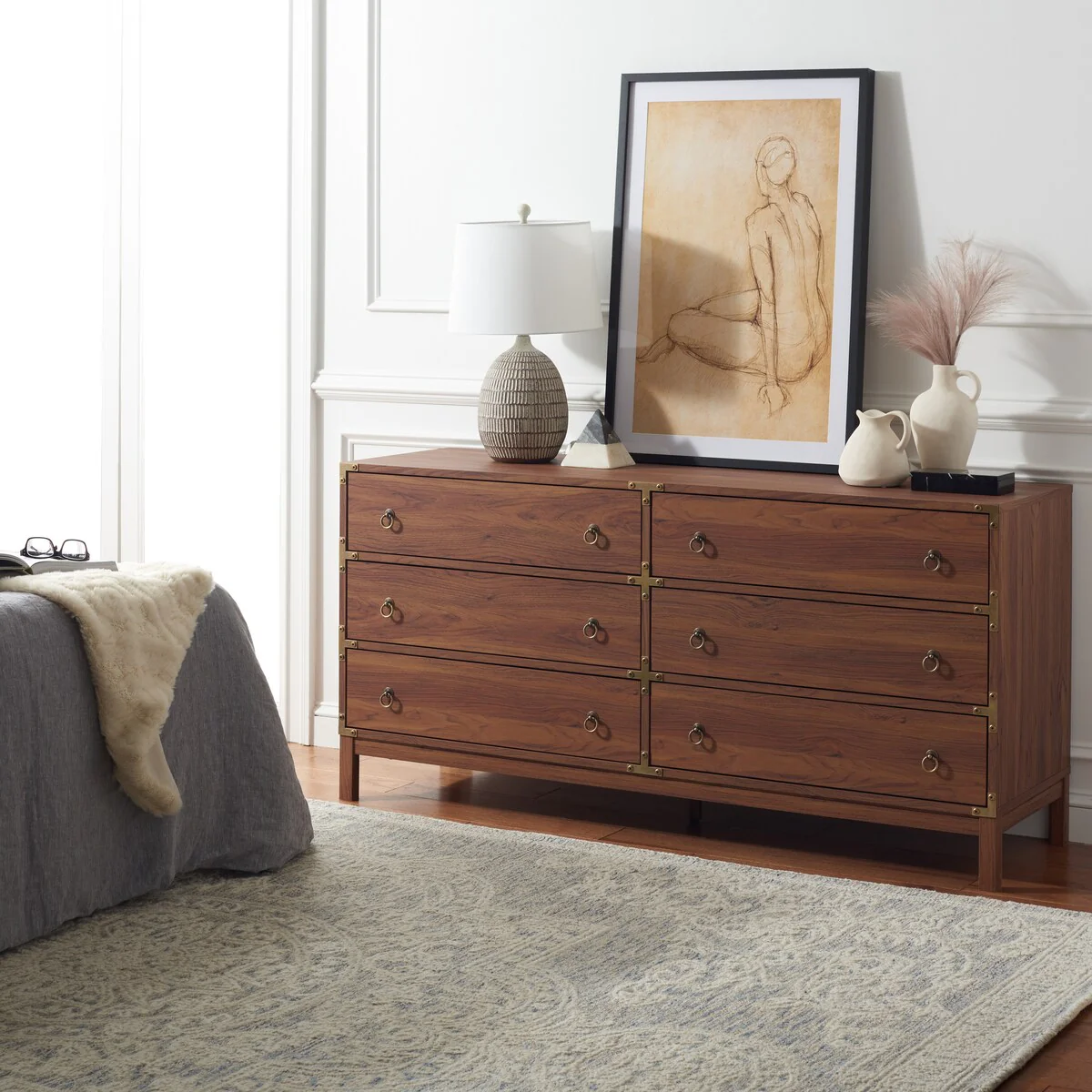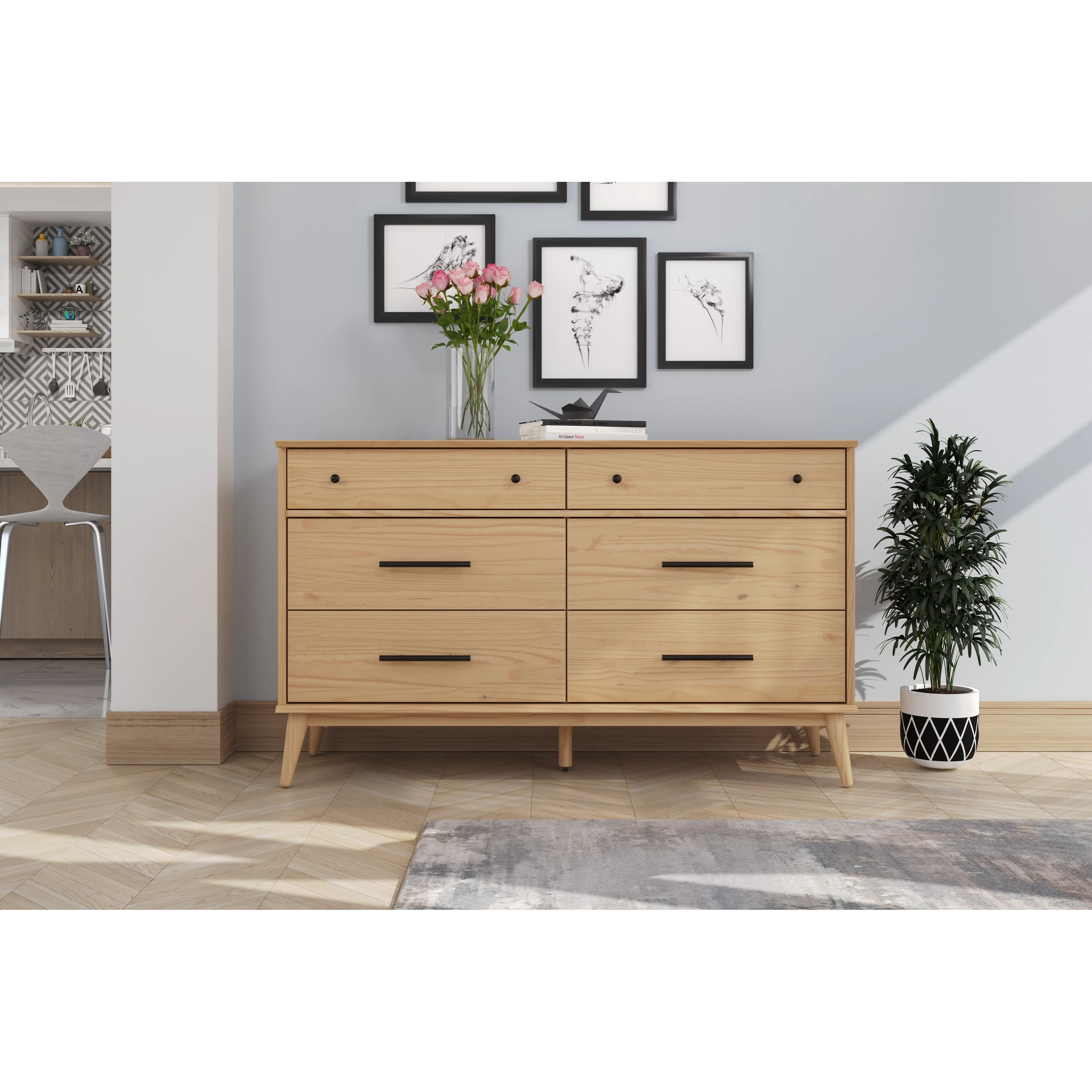 Middlebrook Mid-Century Modern Detailed Solid Wood Dresser