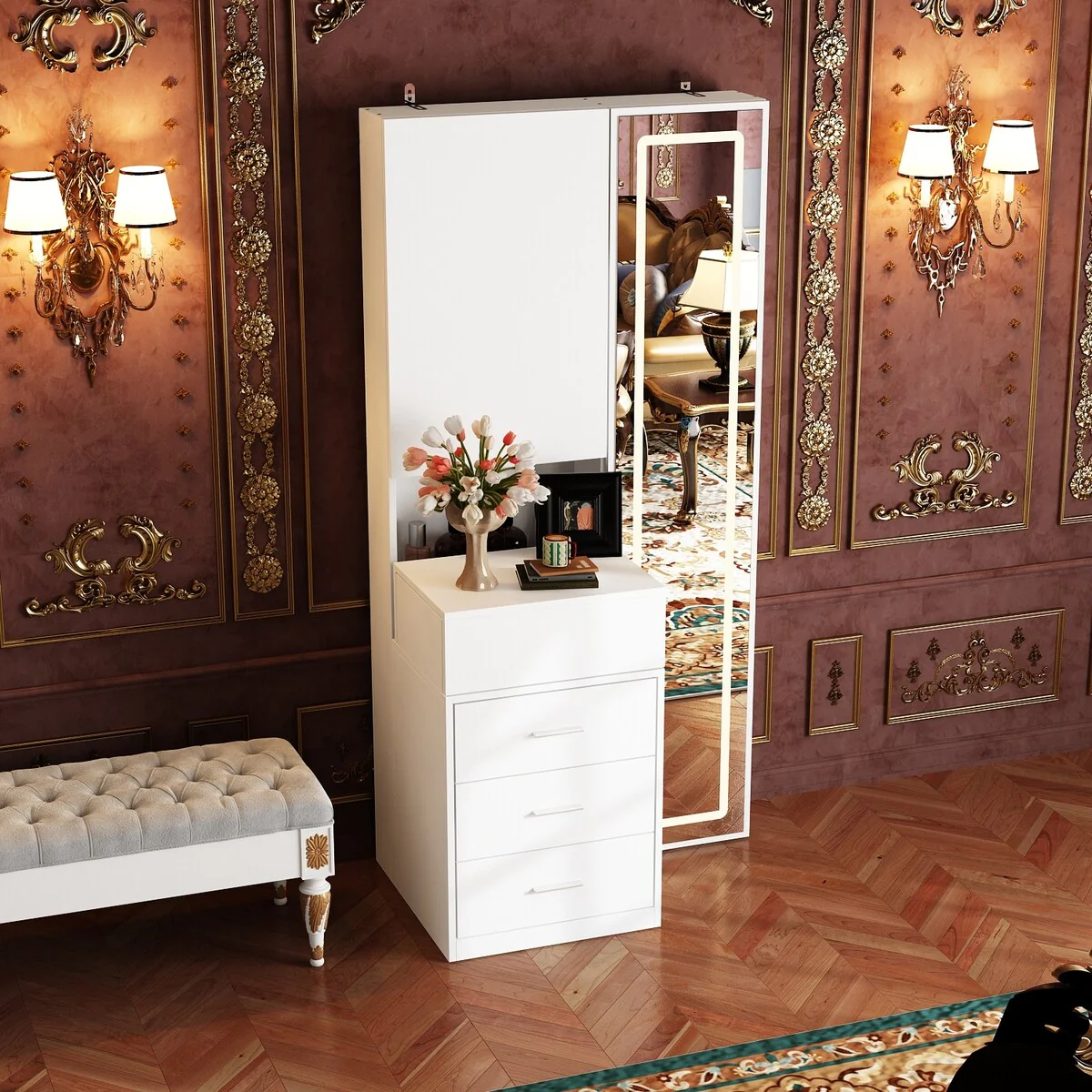 Dresser LED-Lit Vanity Dressing Cabinet with Full-Length Mirror