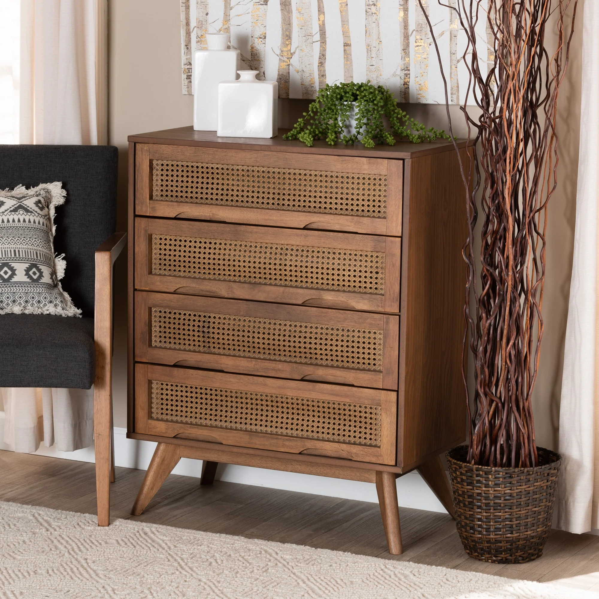 Modern Wide Dresser Storage Tower with 4 Drawers