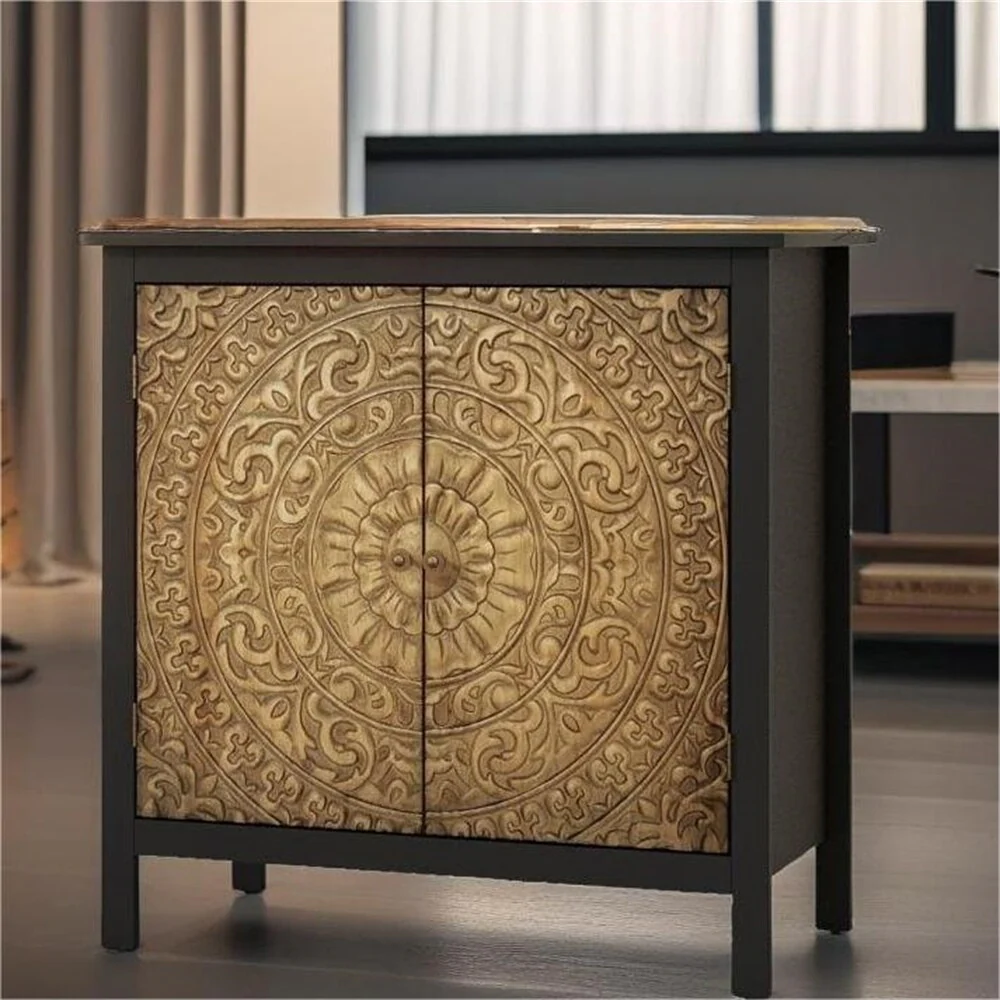 2 Door Wood Accent Storage Cabinet with Non-Slip Foot Pads