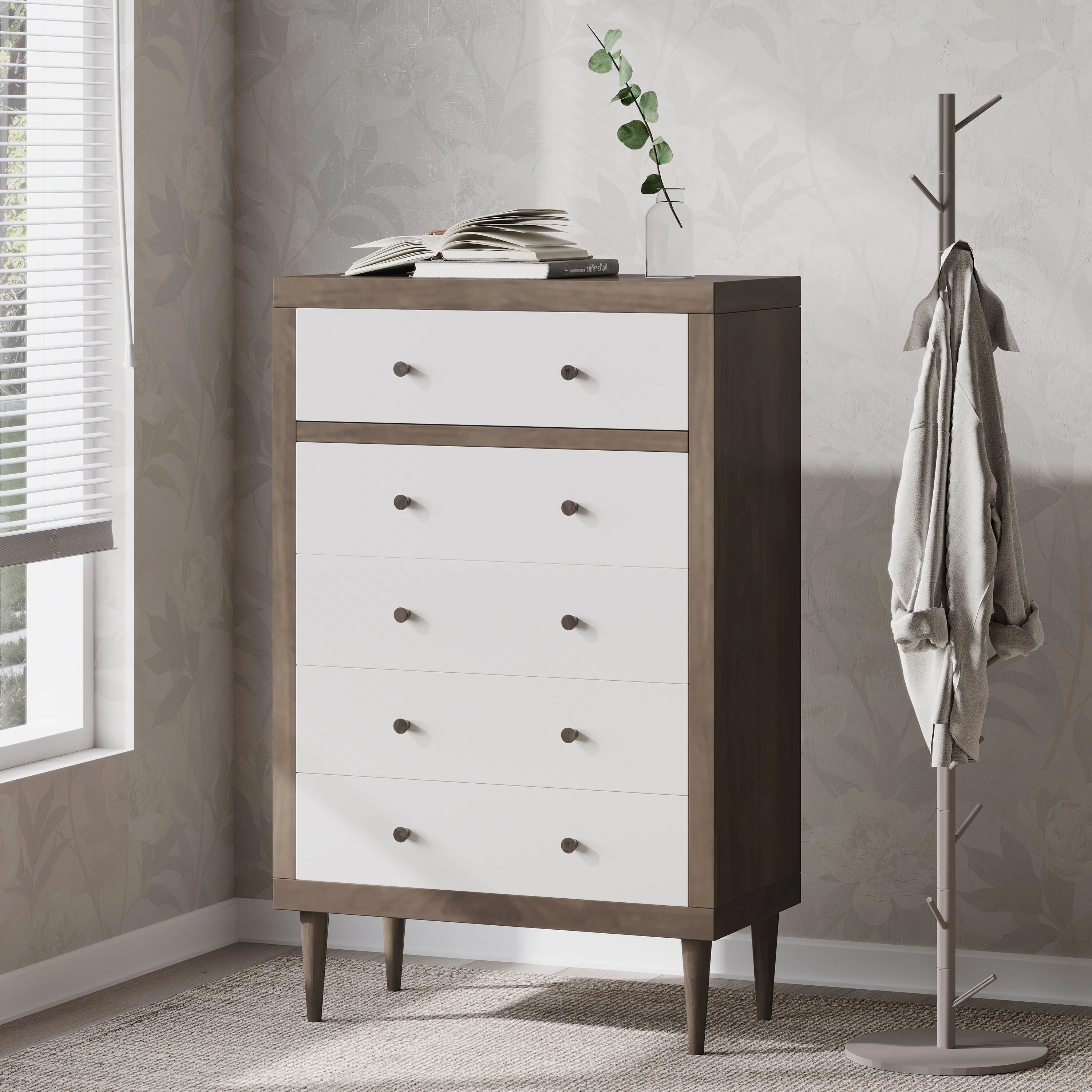 Sandy Beach Coastal Wood 5-drawer Bedroom Chest