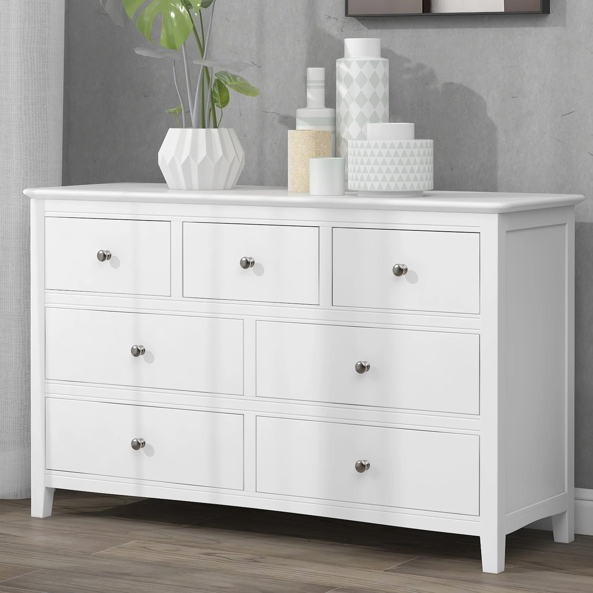 7 Drawers Solid Wood Dresser in White
