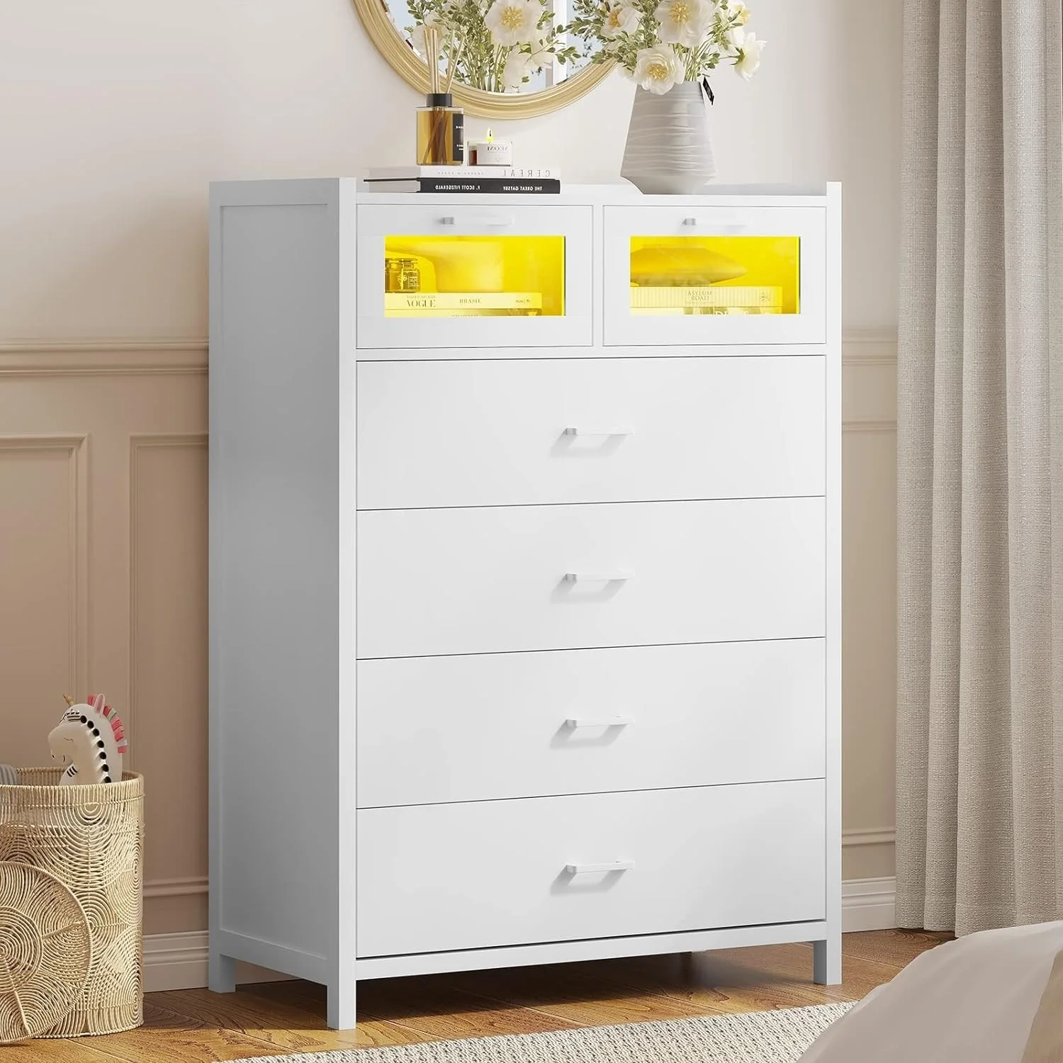 6 Drawers Dresser for Bedroom Chest of Drawers with LED Lights