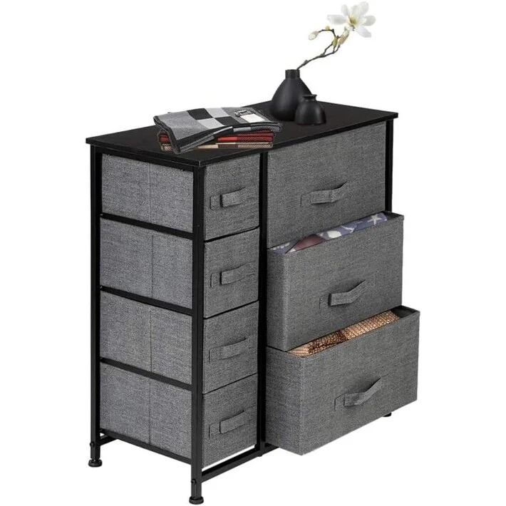 Furniwell 8 Drawer Fabric Dresser Chest of Drawer Cabinet, Black