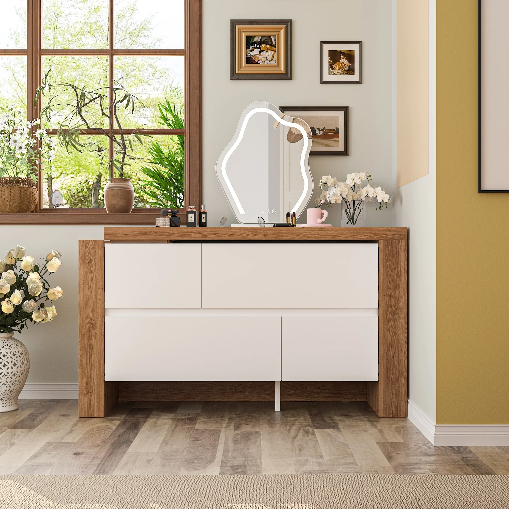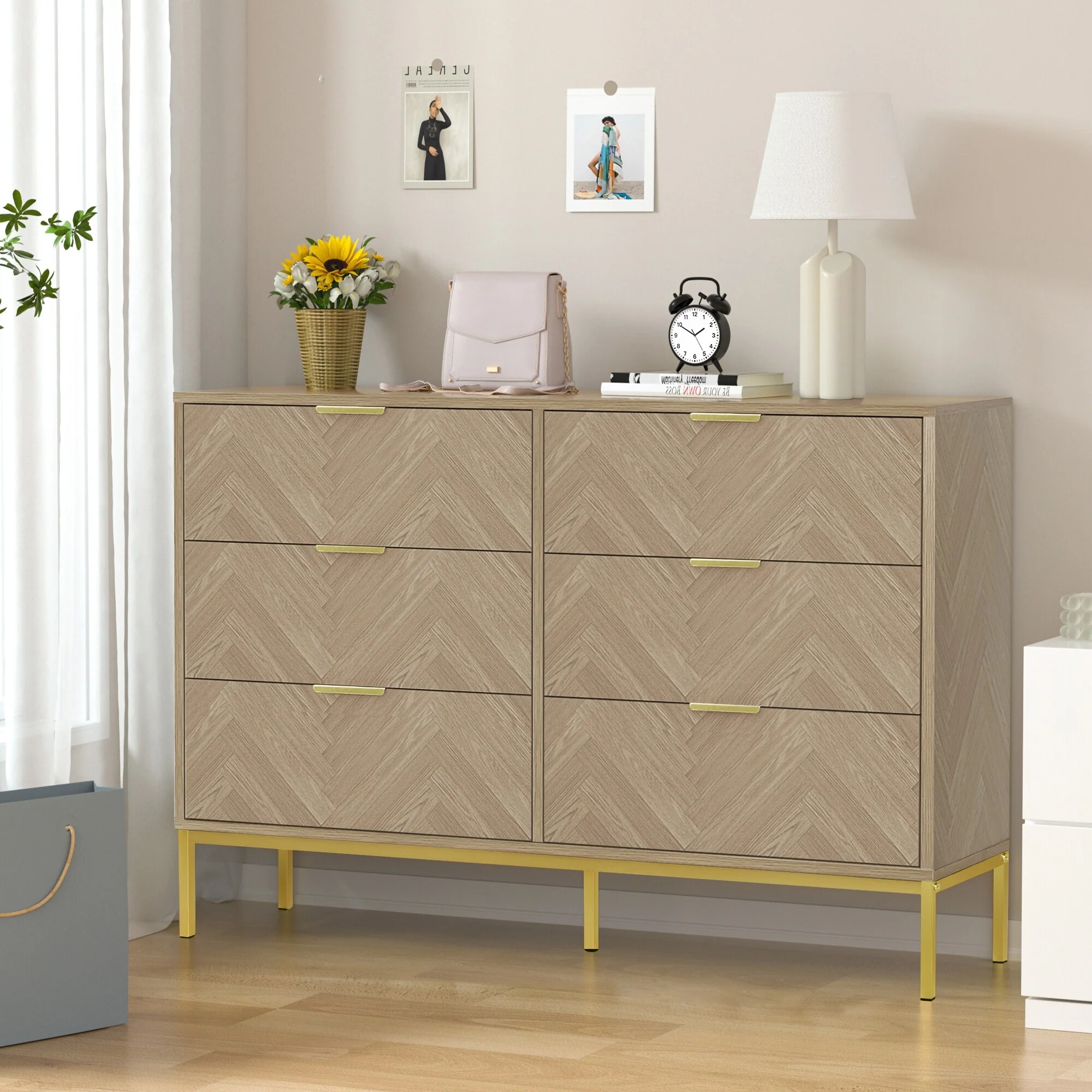 Farmhouse 6 Drawer Dresser, Wood TV Stand, Chest of Drawers