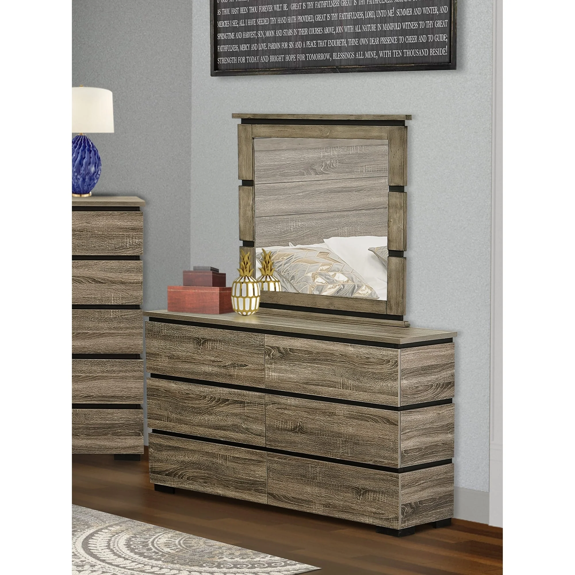 East West Furniture Savona Dresser and Mirror in Antique Gray Finish
