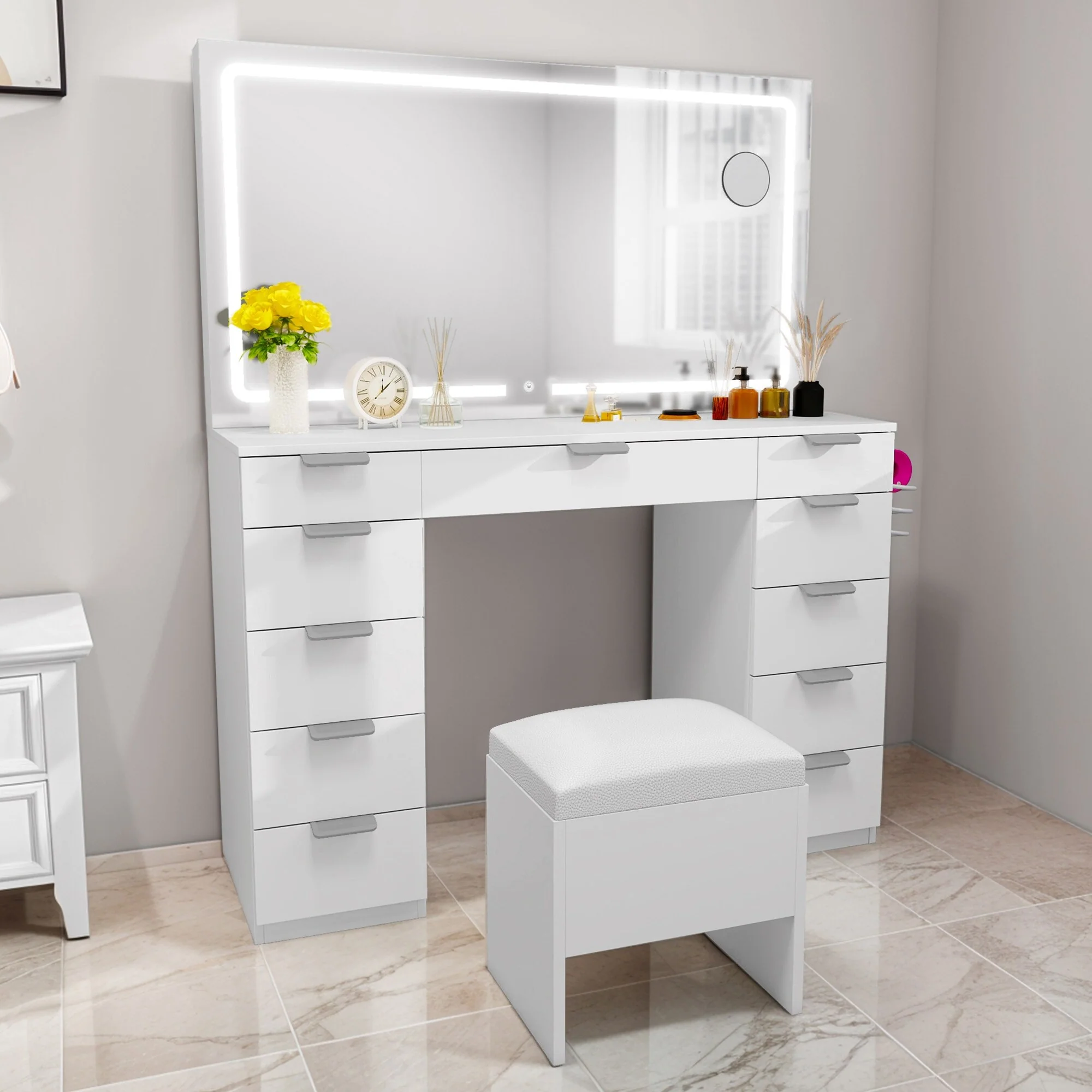 Rectangular Vanity Desk with Mirror and Jewelry Tray