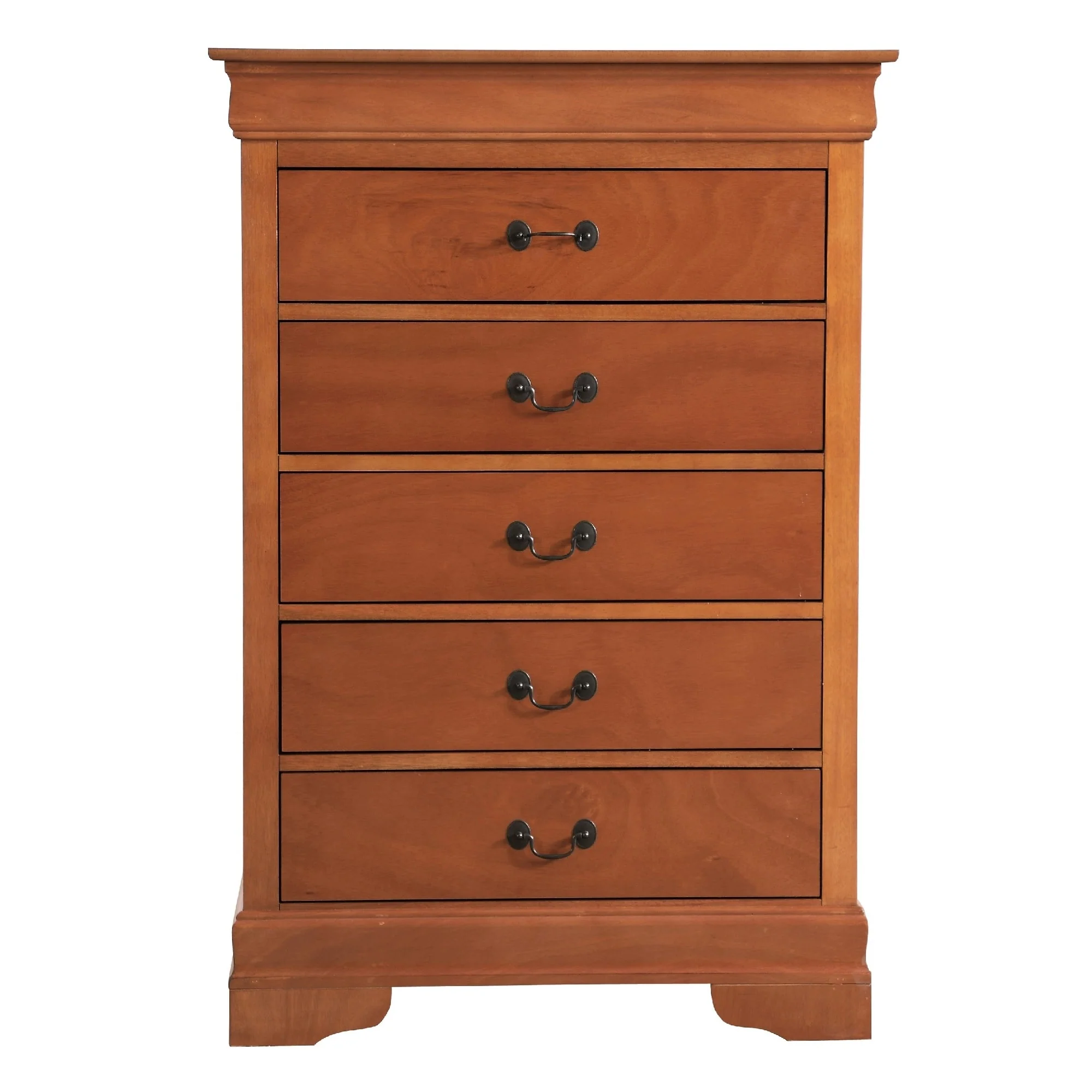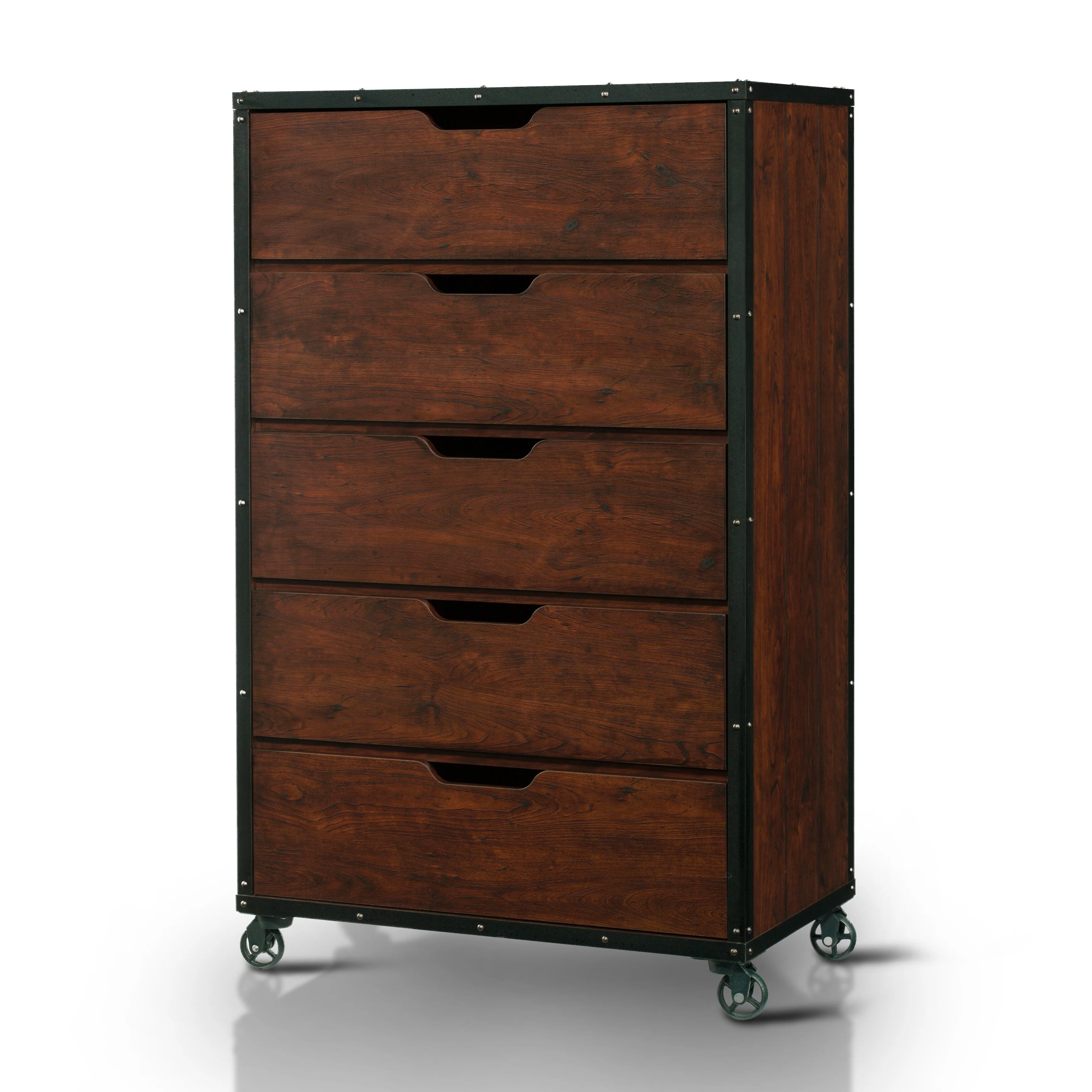 Wooden Bedroom Chest with Five Drawers - 48 - Brown