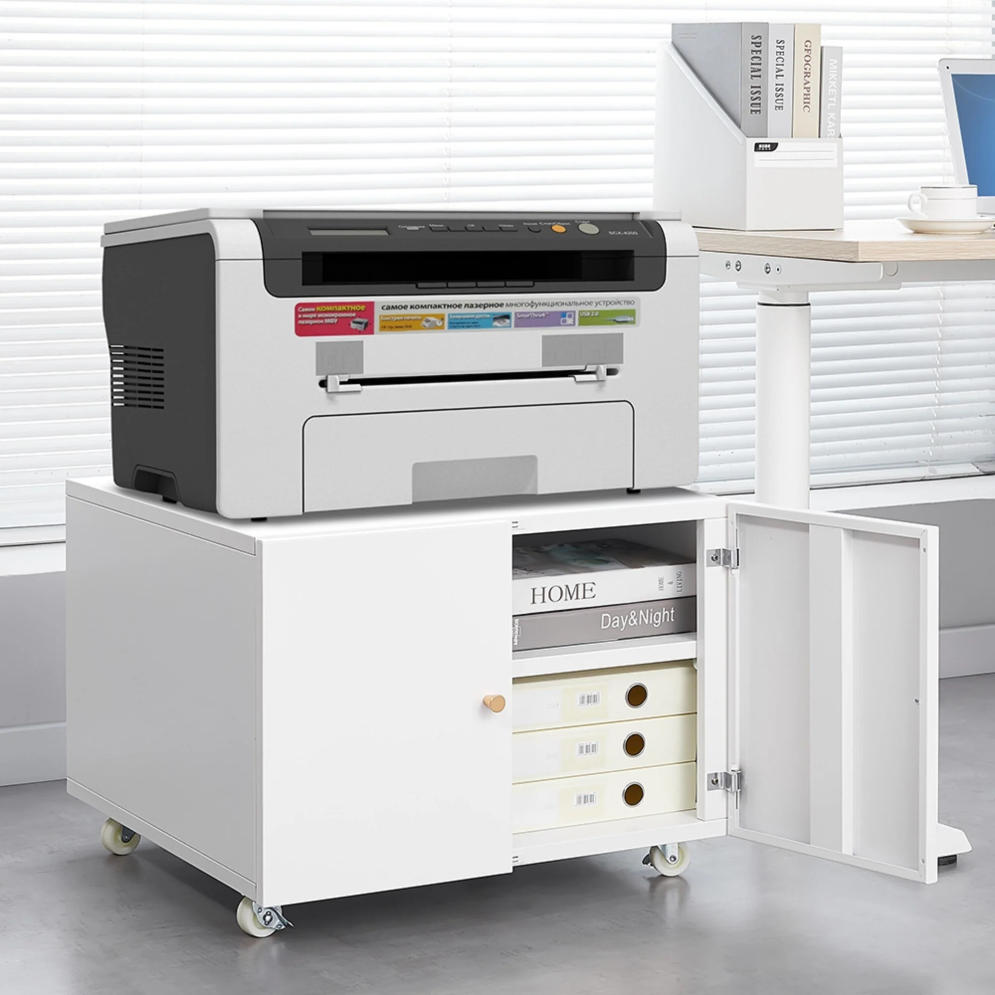 Mobile Office File Cabinet with Lockable Wheels and Shelves