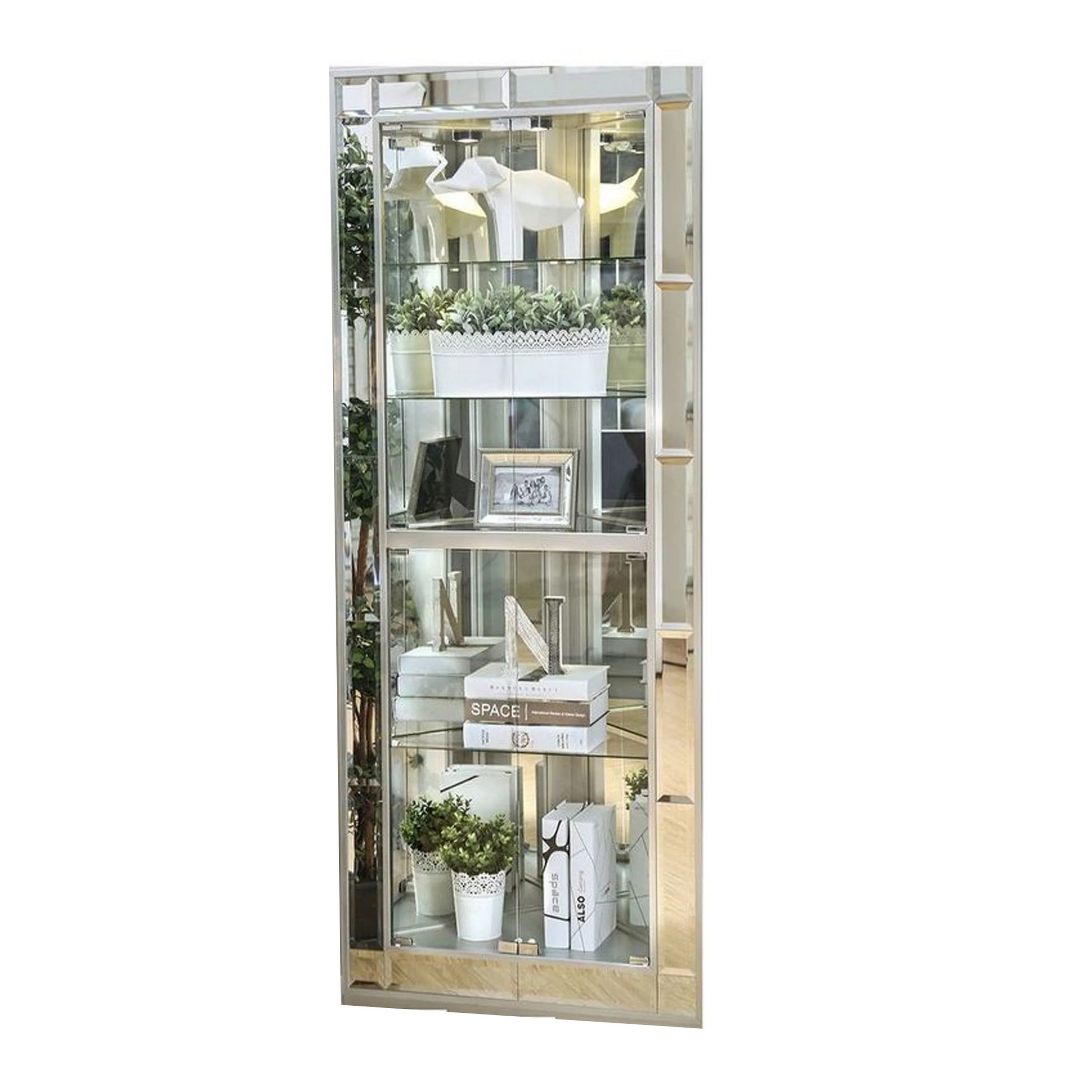 Wood and Glass Corner Curio Cabinet with Five Shelves, Silver