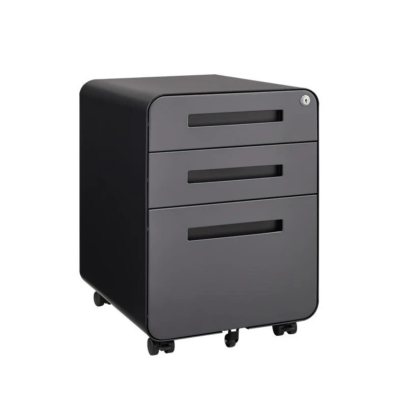 Mobile File Cabinet Wood Rattan 2-Drawer with Lock