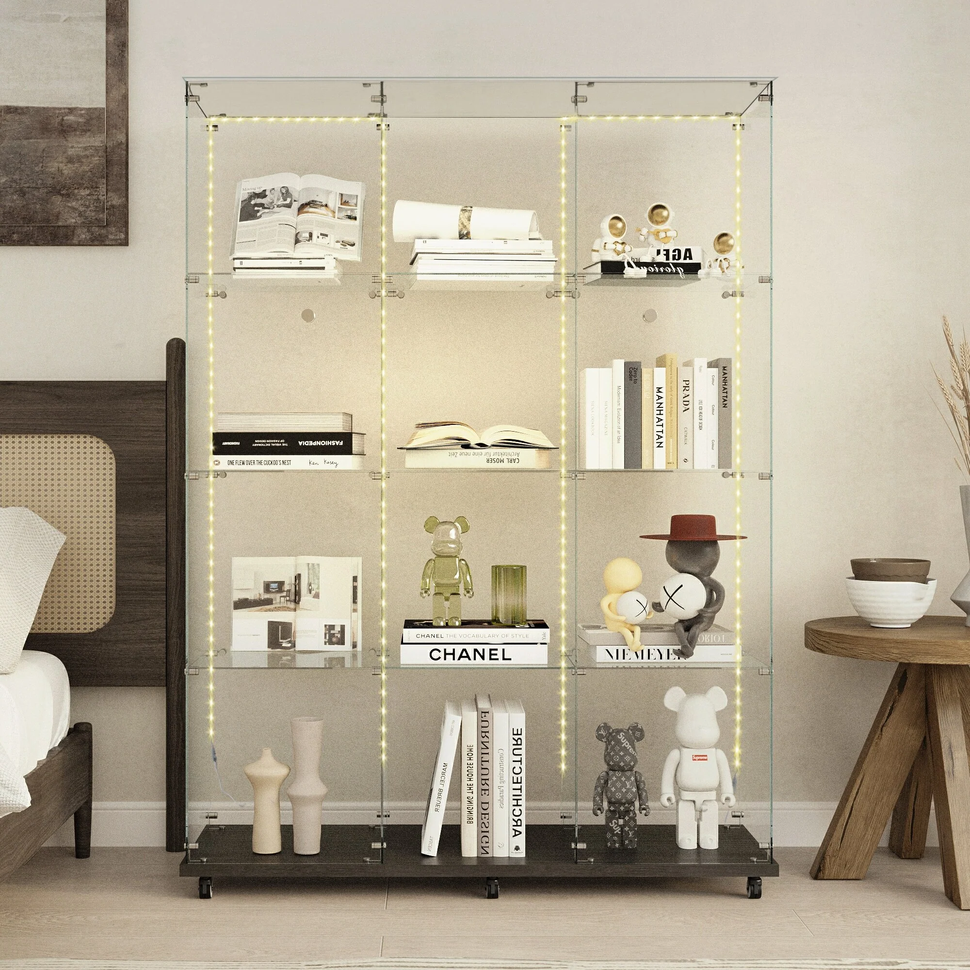 Display Storage Cabinet Showcase with Glass Doors and LED Light