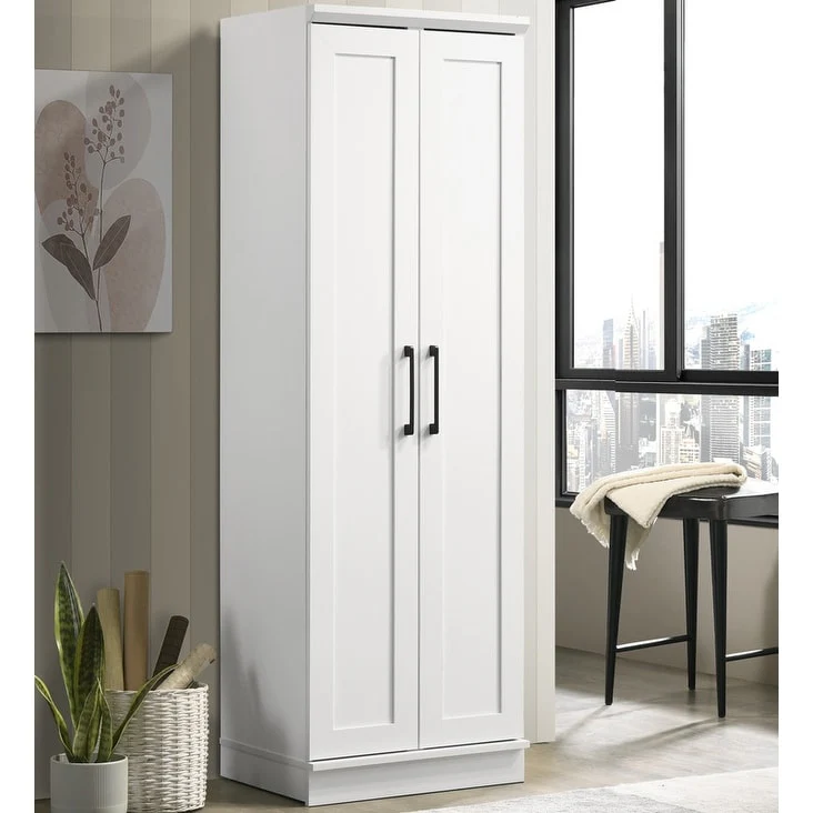Evelyn White Sleek Storage Cabinet with Framed Panel Design