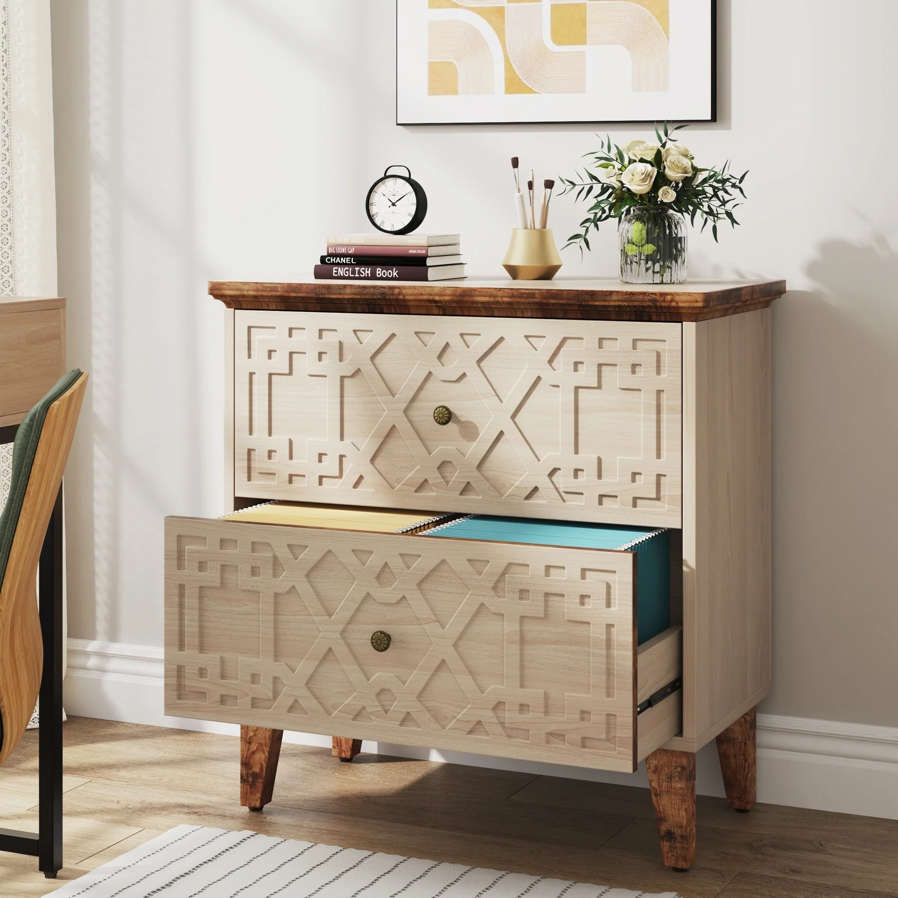 39-Inch Wood 2-Drawer File Filing Cabinet Printer Stand