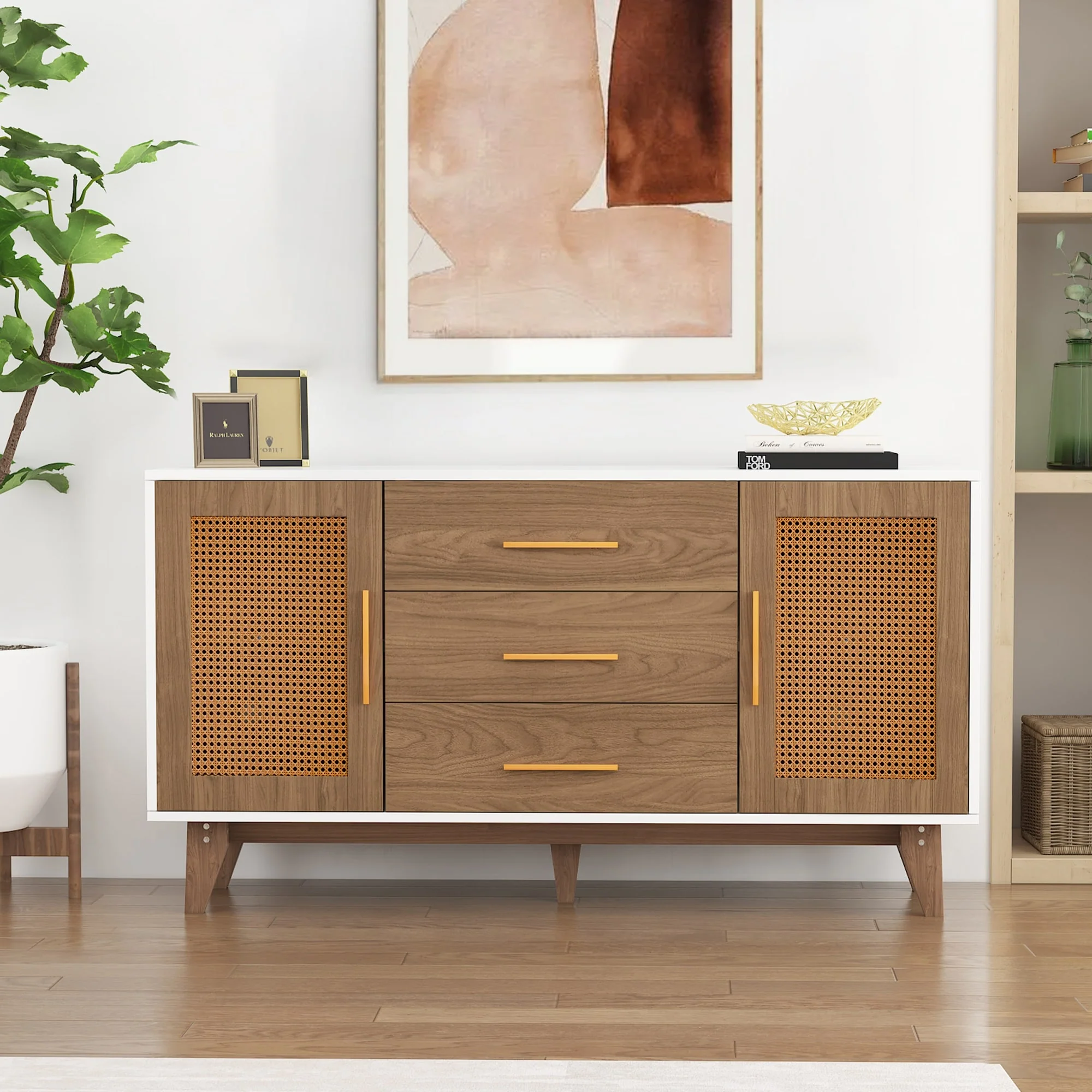 59 inch rattan storage cabinet