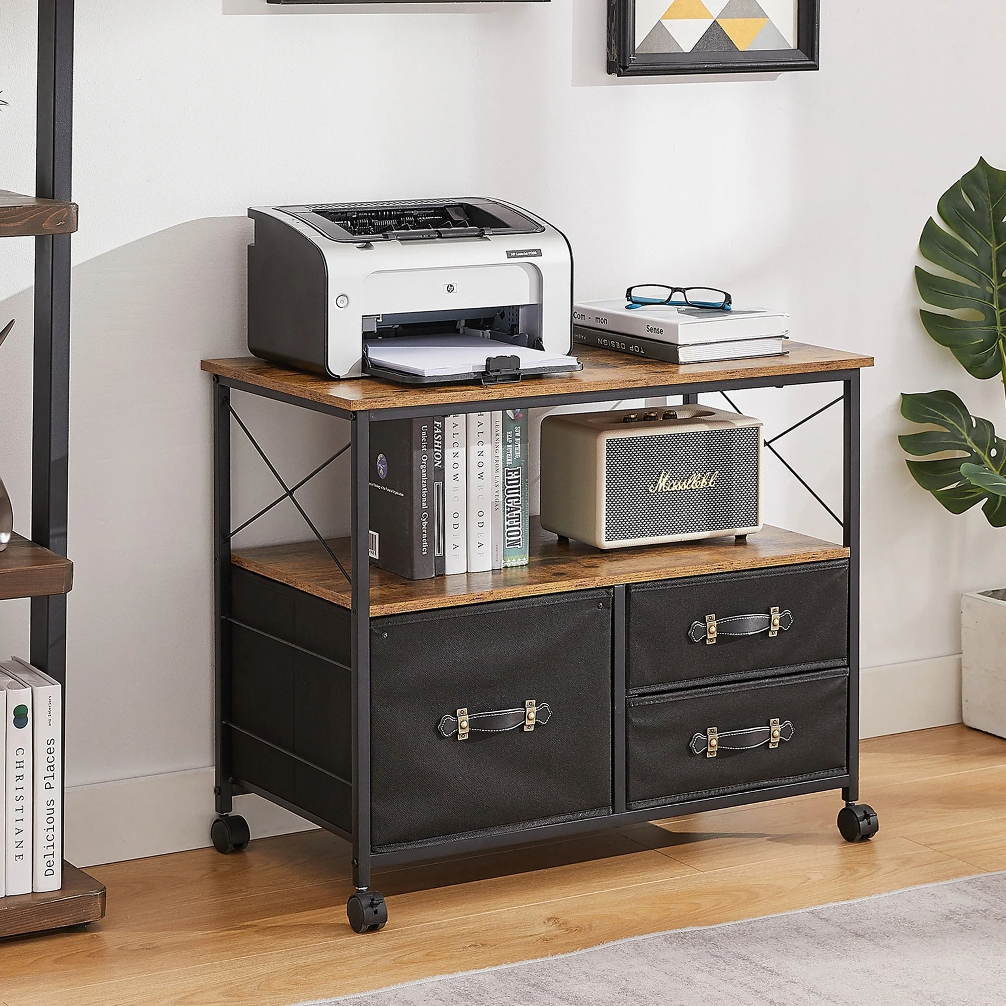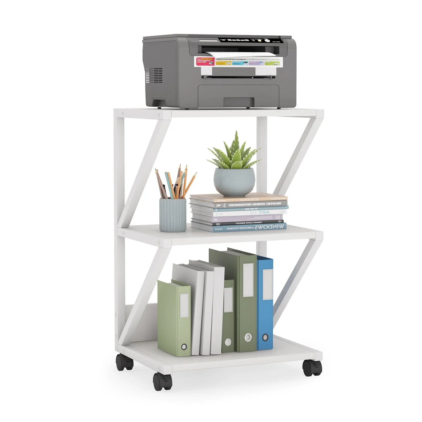 Printer Stand, 3-Tier Rolling Printer Cart Under Desk Storage